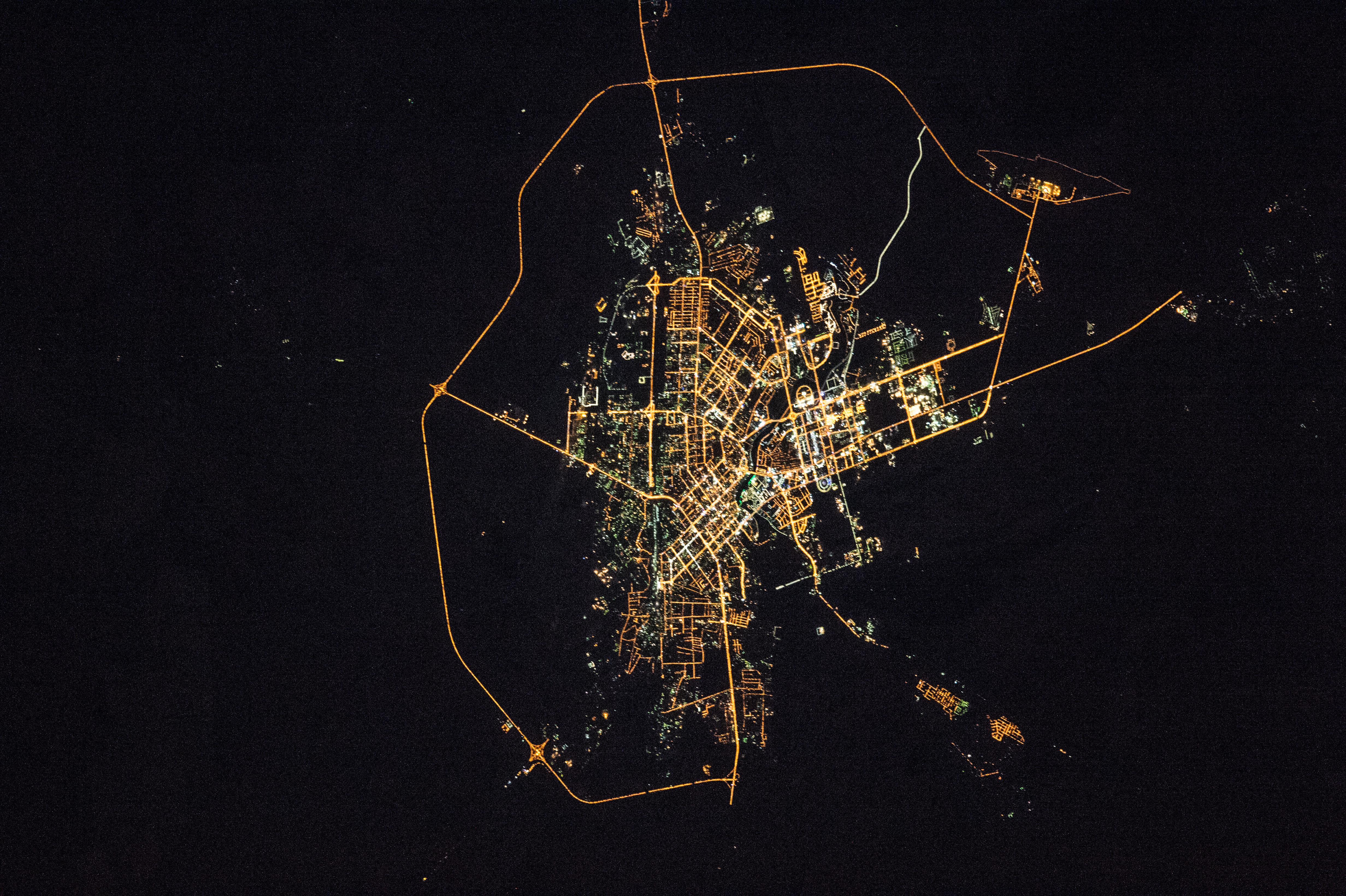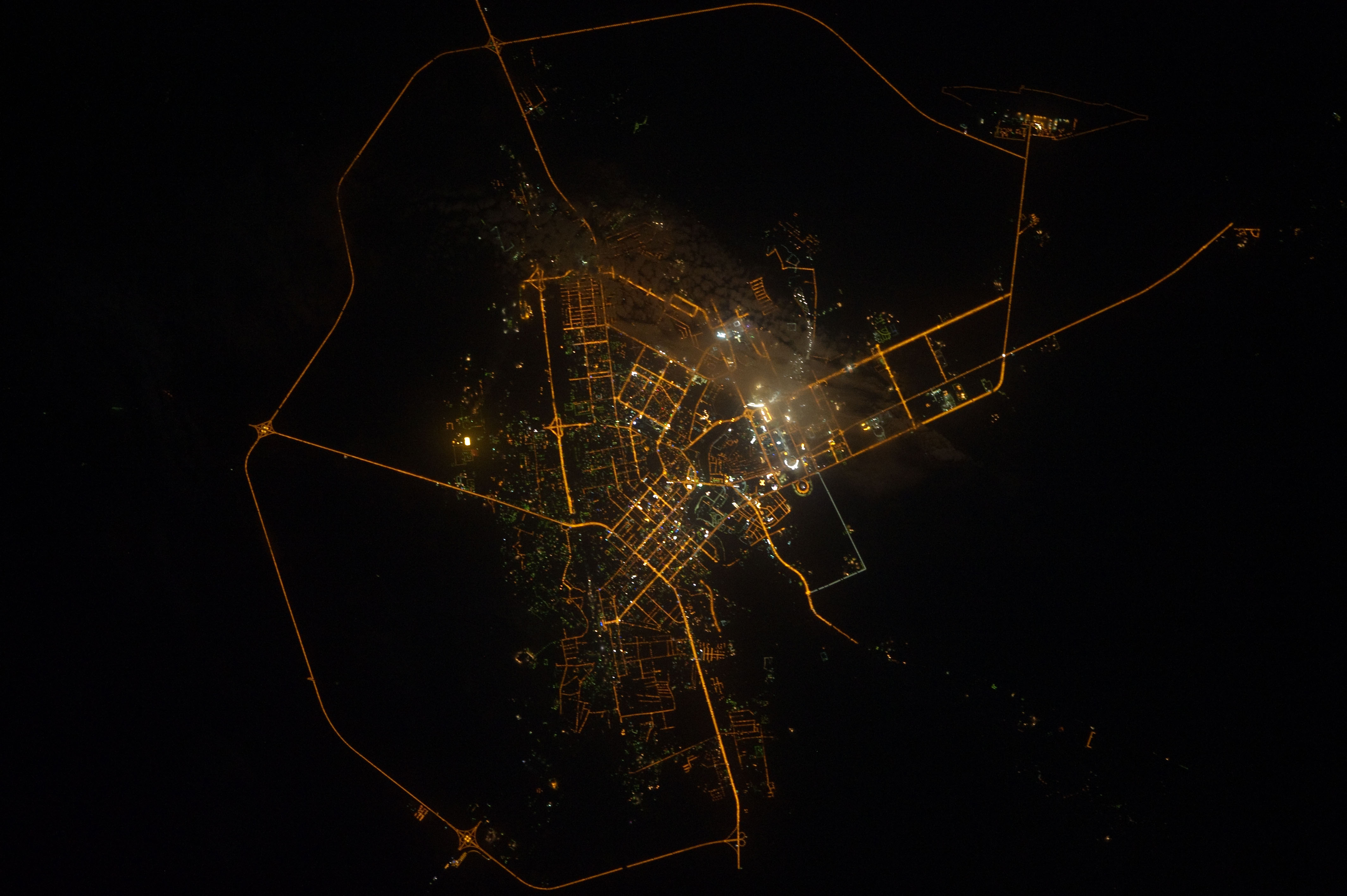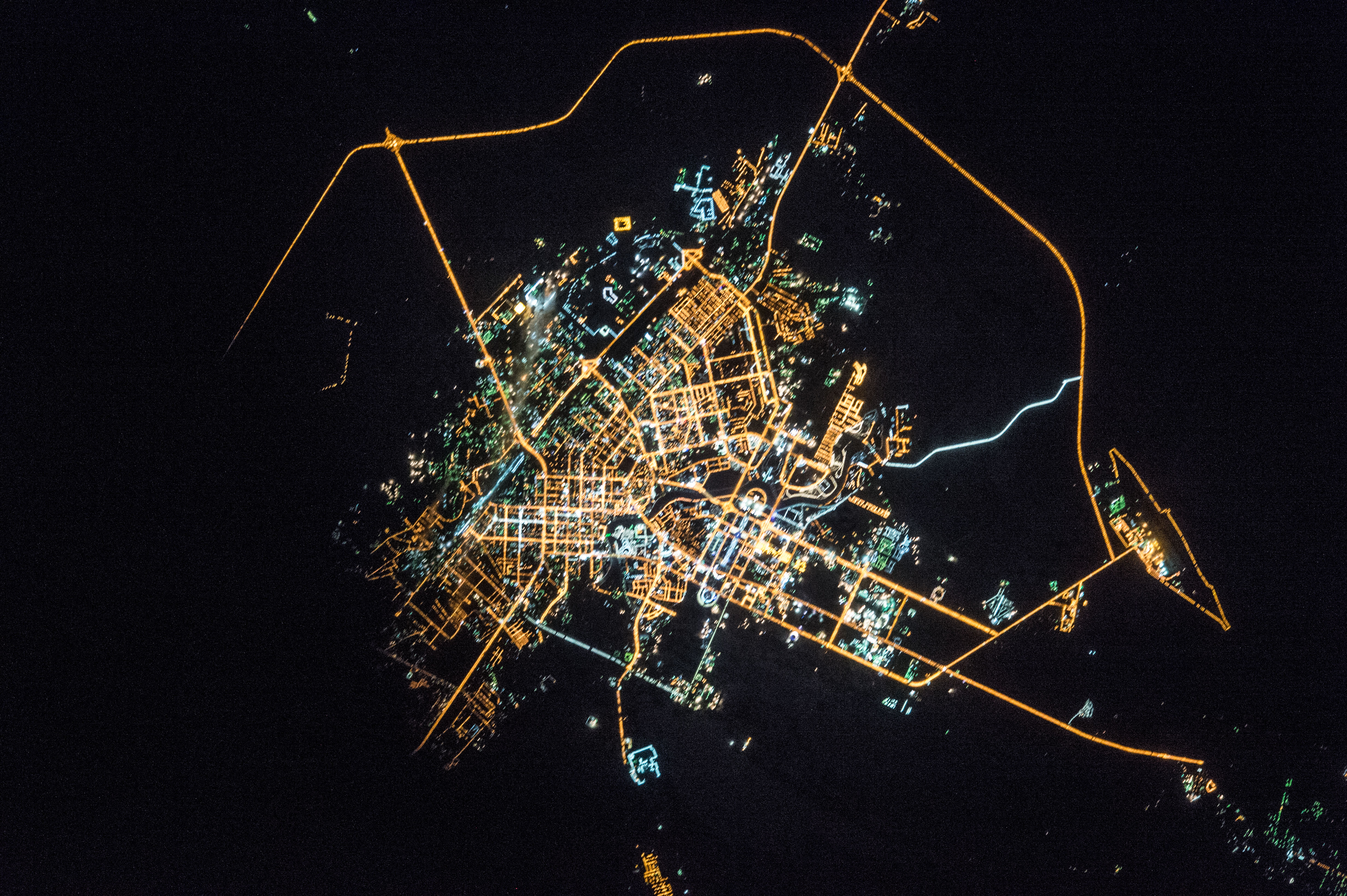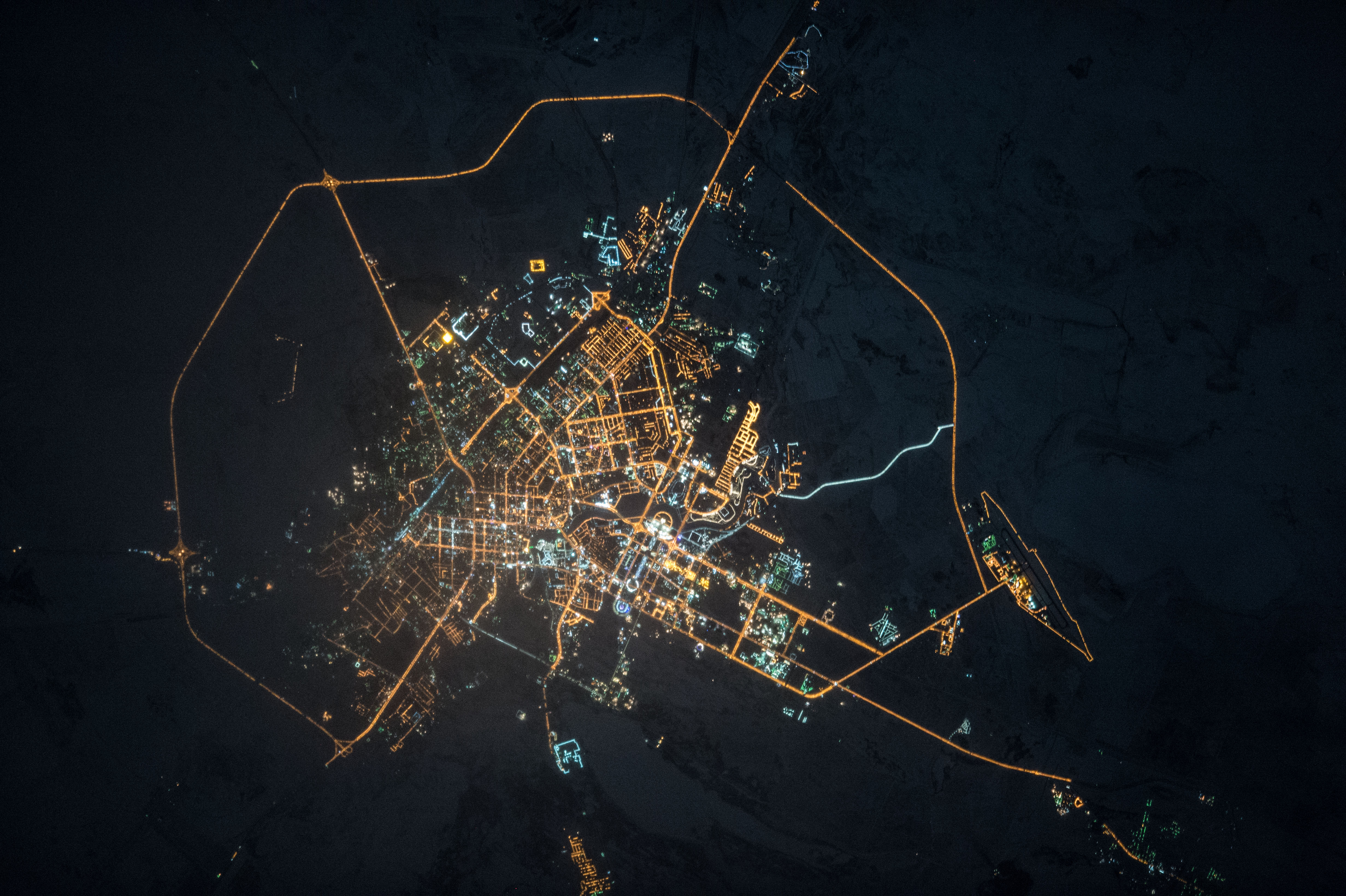 Подборка лучших снимков ночных огней Астаны с Международной Космической Станции.