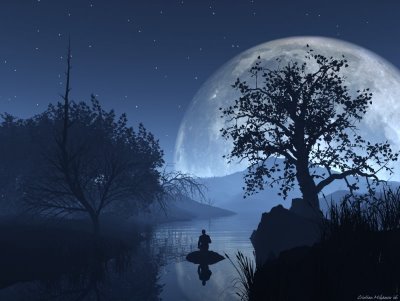 В небе две "луны", слева явные тени от левой, а справа от правой, хотя тени должны быть как от двух источников света.