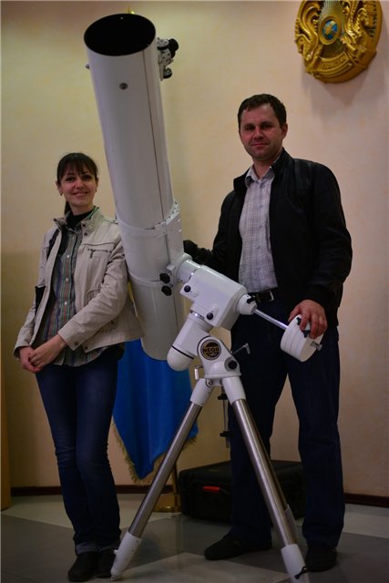 Вчера у нас в Кустанае прошло мероприятие под названием "Ночь в музее", которое проходит каждый год в каждом музее мира. В список развлекательных программ этого мероприятия мы решили включить "Тротуарную астрономию" , но нам помешала погода - до самого конца мероприятия облака и не думали расходиться (я время от времени ходил на улицу в надежде на появлении чуда - чистого неба) . Облачно-дождливая погода "загнала" нас в фойе музея, где мы поставили свои телескопы. Вначале рассказали о телескопах, потом показывали презентацию и устроили викторину. Особо стойкий и заинтересованный народ простоял вплоть до окончания мероприятия и 3-4 человека спросили даже адрес форума. Участники: Сергей (astrs), Оксана (преподаватель астрономии из КГПИ) и я.Фотоотчёт:И немного оффтопа... Одна из развлекательных программ прошедшего мероприятия - фехтование: