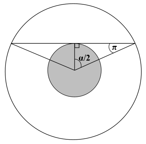 Из рисунка видно, что угол α/2, стягивающий половину видимого пути светила над горизонтом, равен: