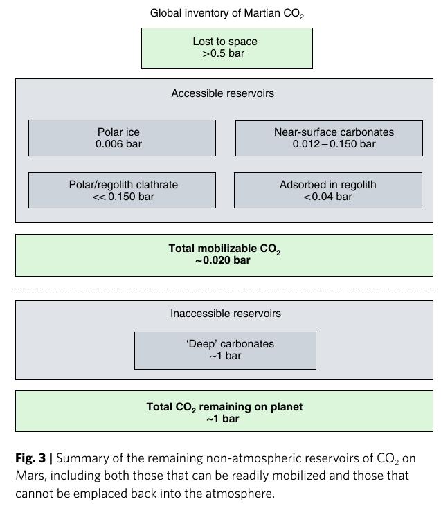 Остается вопрос сколько все-таки углекислого газа на Марсе. Авторы этой новой статьи признаются что у них нет оценок - вполне возможно что его все-таки наберется 0.3 бара.