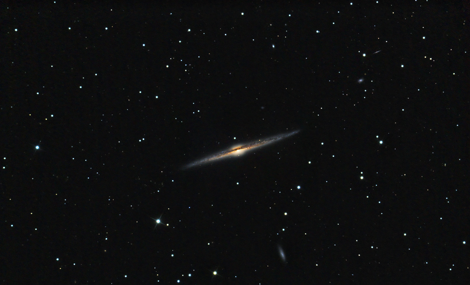 NGC4565. Снято 19.02.10 на SW25012EQ6pro +паракорр+ Sony A200, калибровка в IRIS сложение FITStacker. 28 кадров по 4 мин, ISO 1600 плюс 11 кадров 8мин ISO 1600. Гидирование через Максим.В большем разрешении здесь http://www.astroperm.ru/download/file.php?id=631&mode=view но имхо там один шум, в более мелком разрешении смотрится лучше.