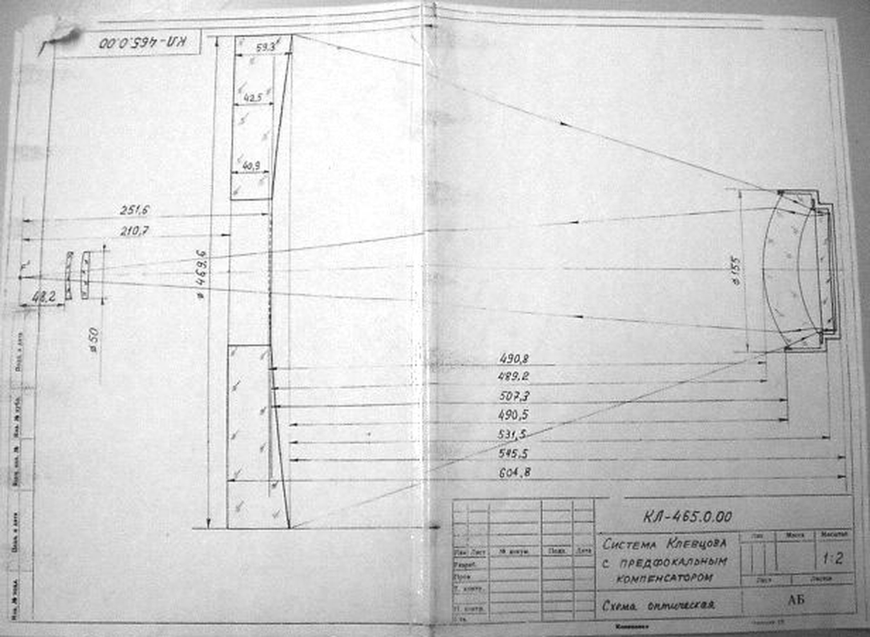 Цитата: Arianov от 06 Дек 2020 [00:03:35]Корректор рассчитывал Клевцов, изготавливал профессор Лядов. Он находится на вторичном зеркале.Корректор - я имею в виду вот эти 2 линзы слева на чертеже.Тут правда кассегрен-конфигурация, но они должны быть и на Нэсмите.Где он находится в вашем варианте? Сразу за диагональной вторичкой? Не совсем понятно.