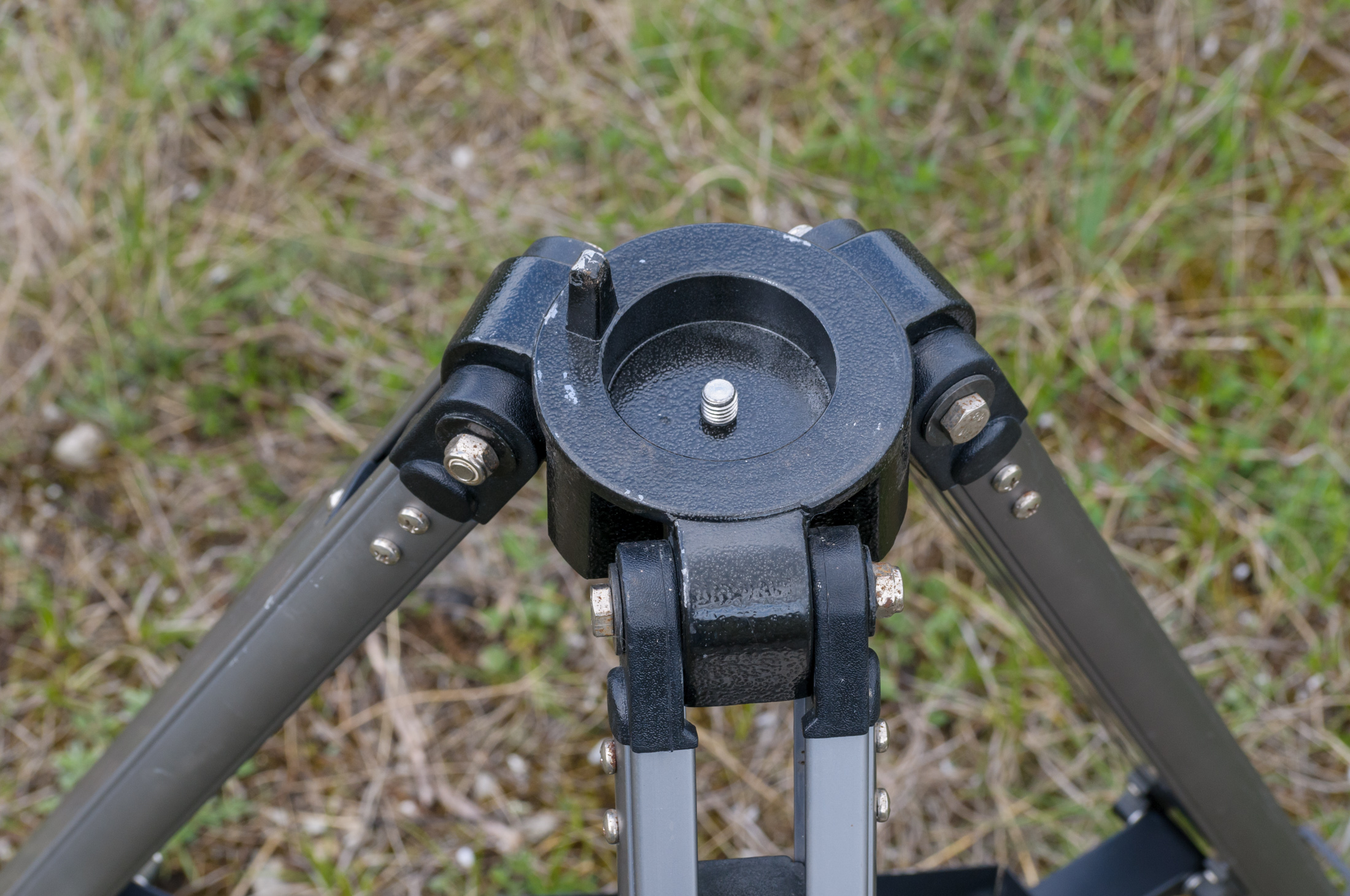 Голова в отличном состоянии. Всё на месте. Червячные пары совершенно целые. Фиксаторы работают по обеим осям. Трещин, сколов нет. Пузырьковый уровень целый. Искатель полюса чистый, внутри перекрестие. На крышке искателя полюса рассохлась фетровая прокладка. Я бы поменял.