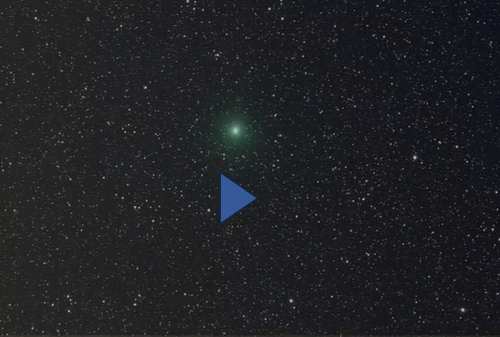 Комета проплывает над обильной россыпью звёзд у Млечного Пути, но не теряется в этих «стразах», а выделяется своим цветом и формой комы. А вот хвост едва заметен, но он есть и меет интересную форму (присмотритесь на 10 часов)