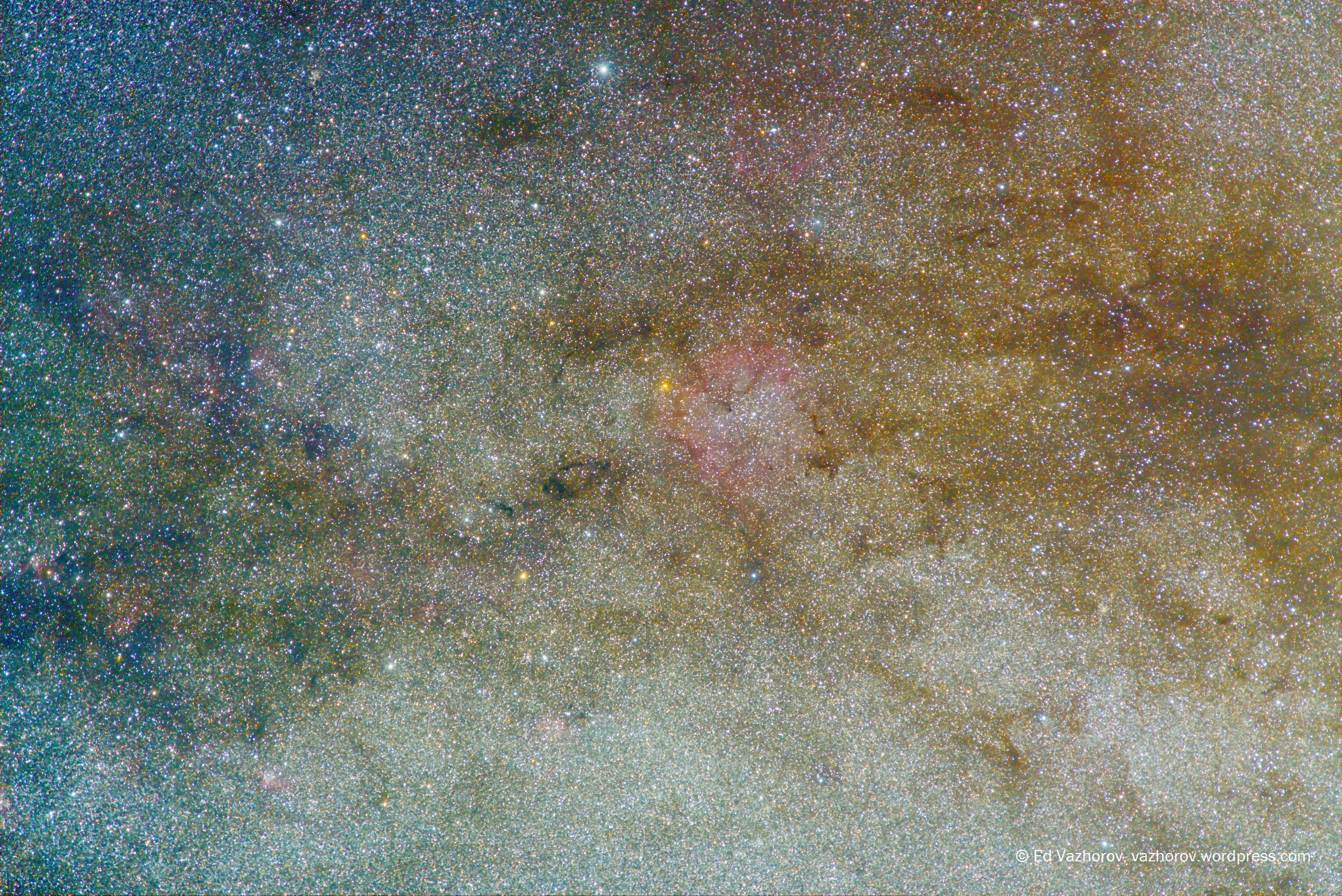 Газопылевая туманность IC 1396 в Цефее и Млечный путь от Цефея до Лебедя