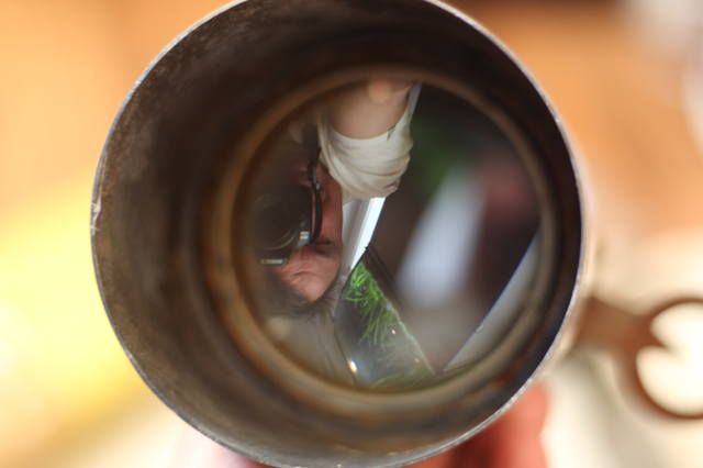 Кстати интересный момент - у БШР из Тагила монти уже штампованная, а труба еще с основательным фокусером. У меня такая труба еще на литой монти, а у штампованной фокусер другой, уже без возможности регулировки прижима. Такой же фиговый, как на последних МШР. Ну и крепление трубы к монтировке на 4-х винтах, а у тагильского еще на шести. Видимо промежуточное звено эволюции.