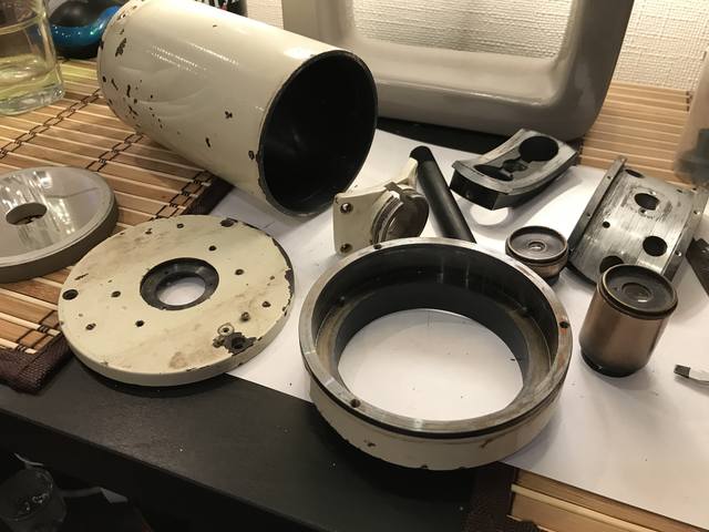ТVD-шку мне простили ))А вот красить категорически не позволили.. в квартиреостались неокрашенными и уезжают на дачу в первоначальном виде оба прицела..крышка объективаВ процессе поиска ось и ручки фокусёра..прощаюсь с мыслями о предстоящем откручивании объектива тоже до летаНа этом наверное пока обзор завершаю..Телескоп собран и готовится к переезду