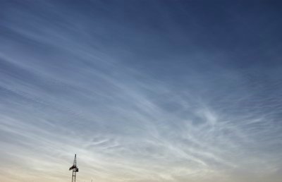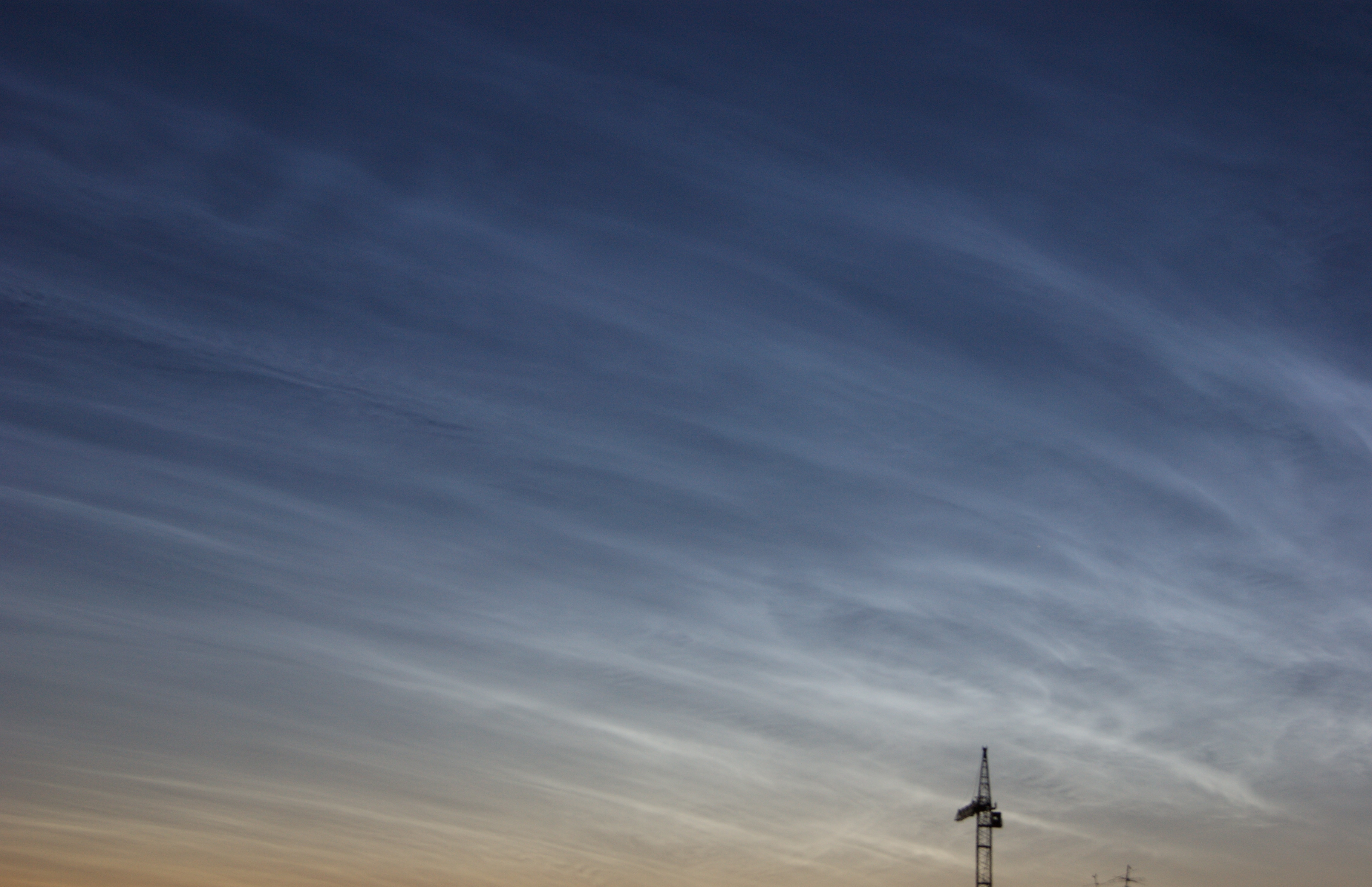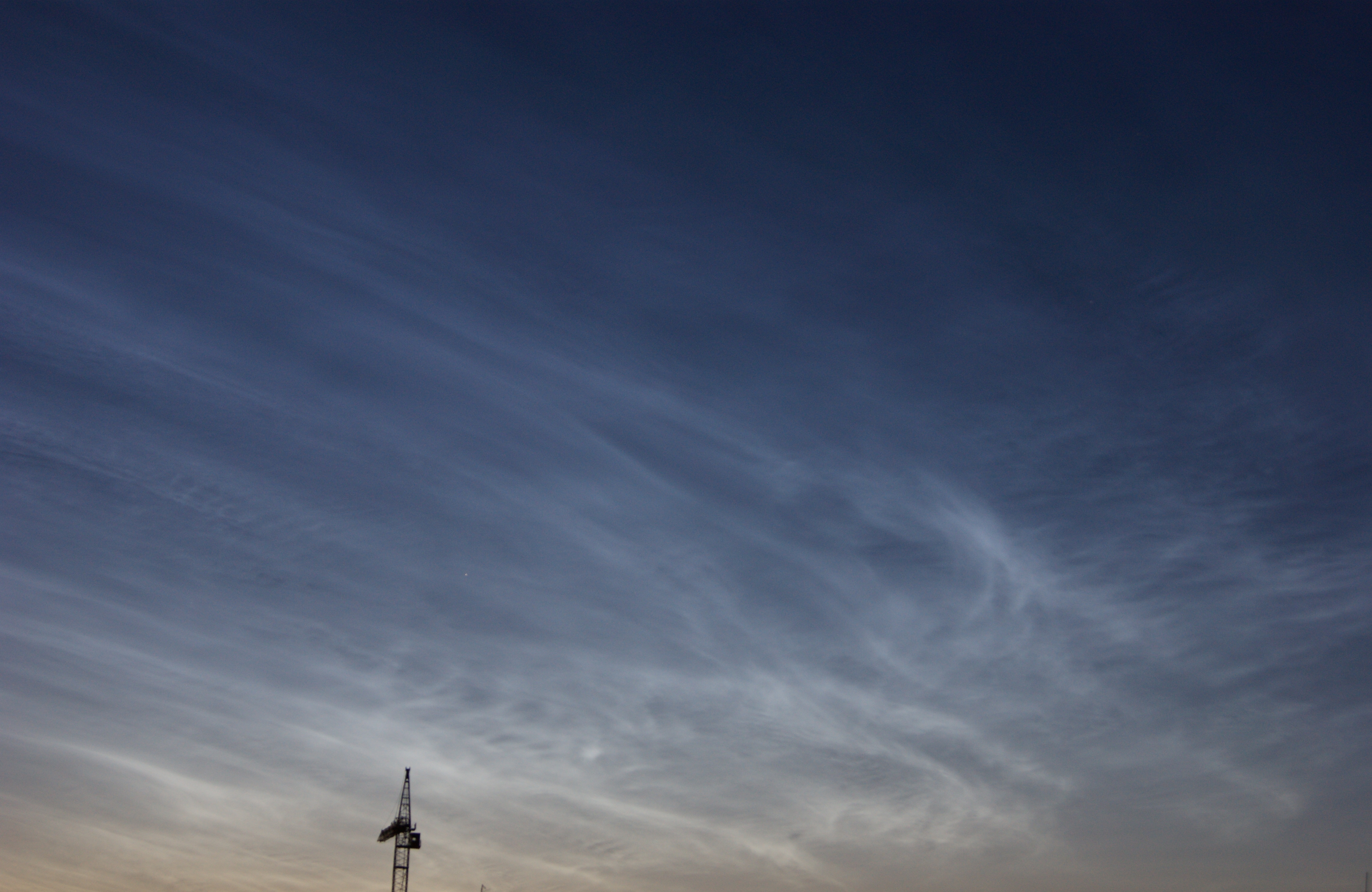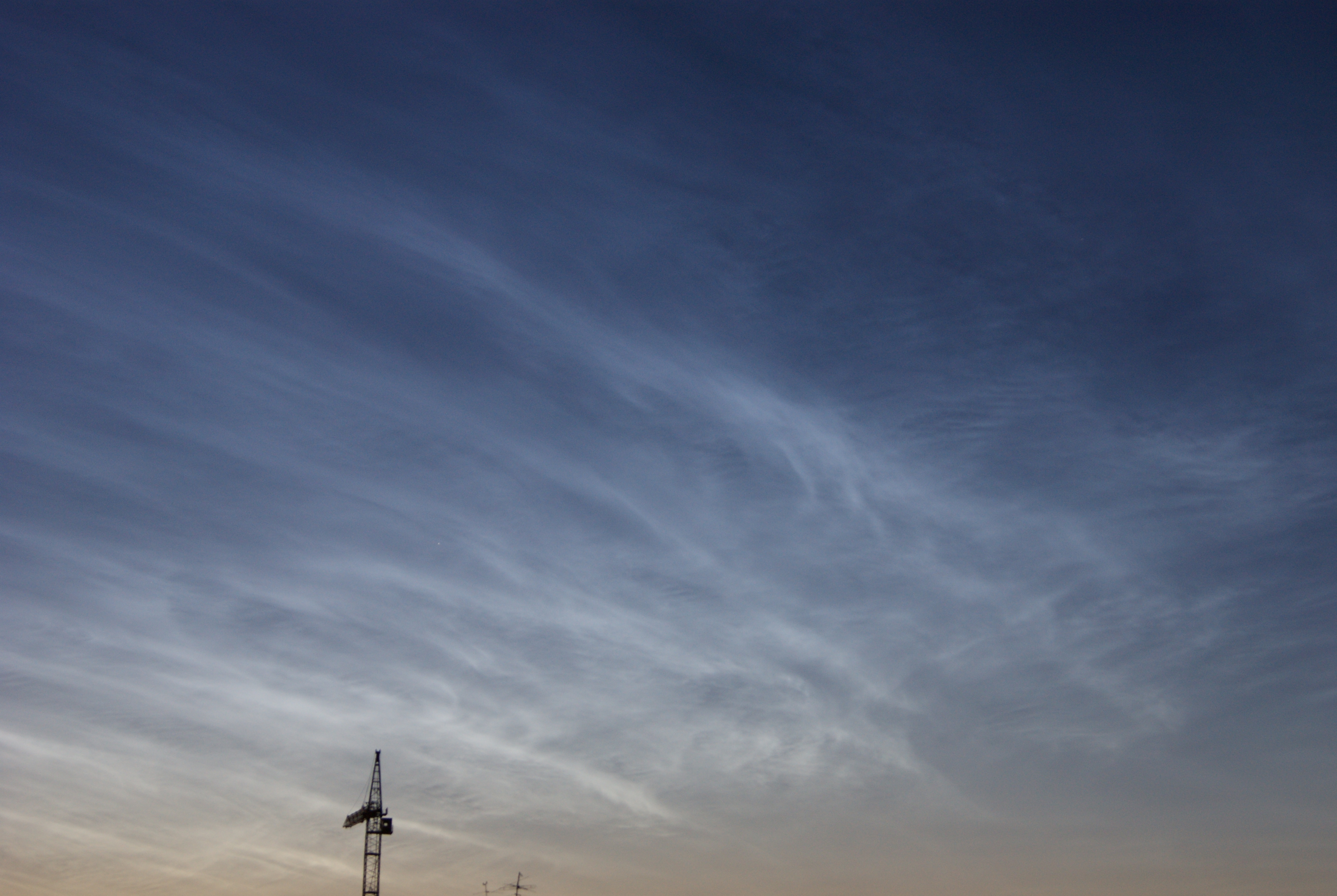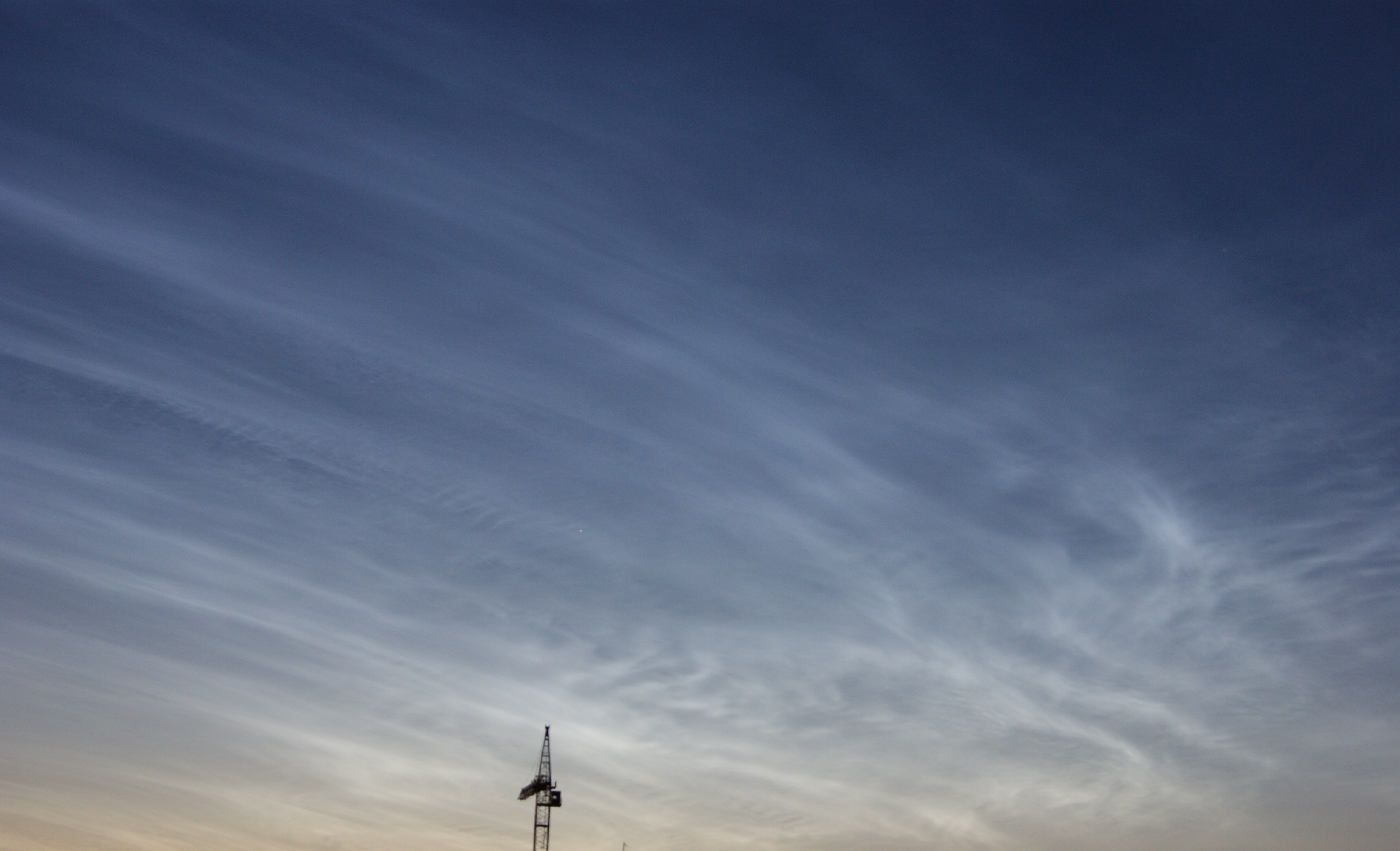 Тольятти. Наблюдал с 1-00 до 3-42 (!!!) Облака были видны за полчаса до восхода Солнца! Очень интересно смотреть на облако, а под ним подсвеченный Солнцем след от самолета. Фотографировал до разряда батарее в фотике. Потом на сотовый. Всего сделал почти 7 гигов фоток. Буду обрабатывать и выкладывать позже. Дома слабый комп. Пока только последний снимок с сотика.