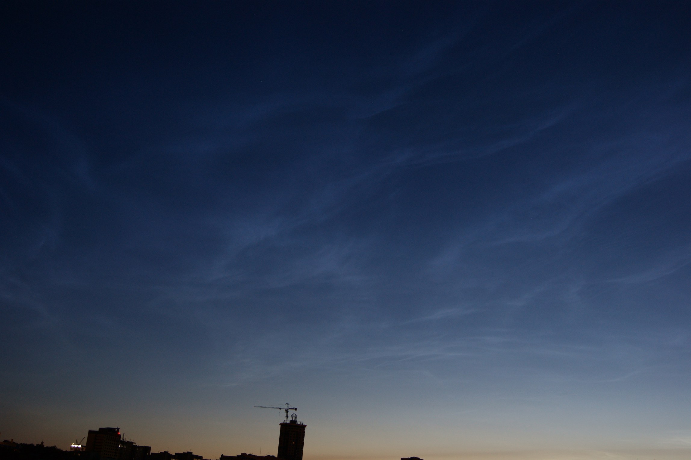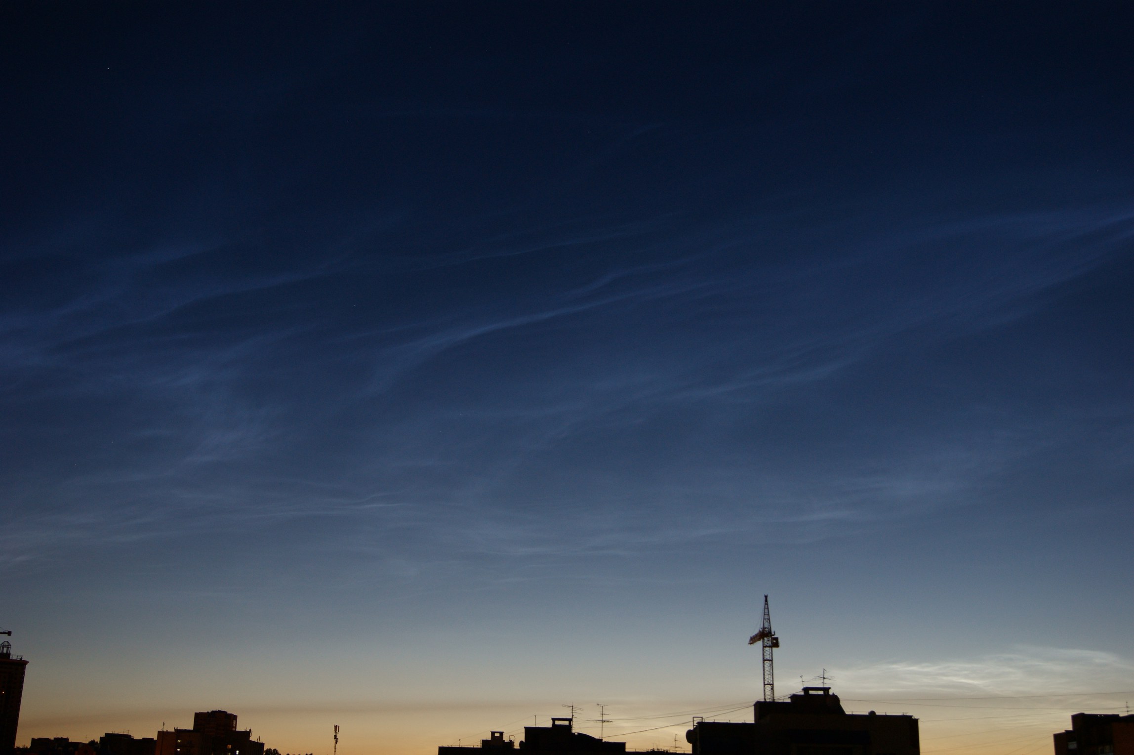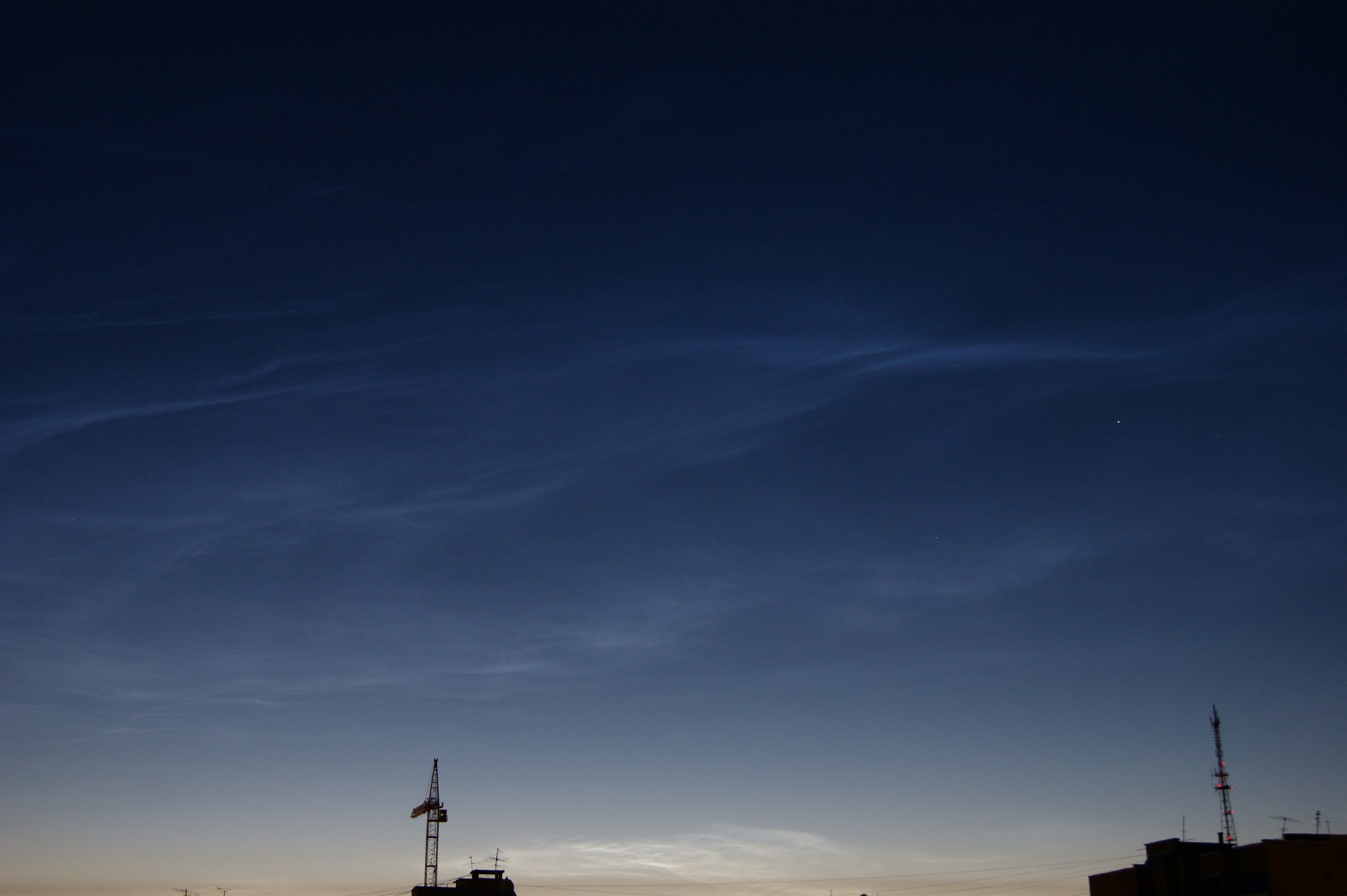 Ярославль, север, высота 40 гр, пятна серебристого флёра, яркость 1 балл