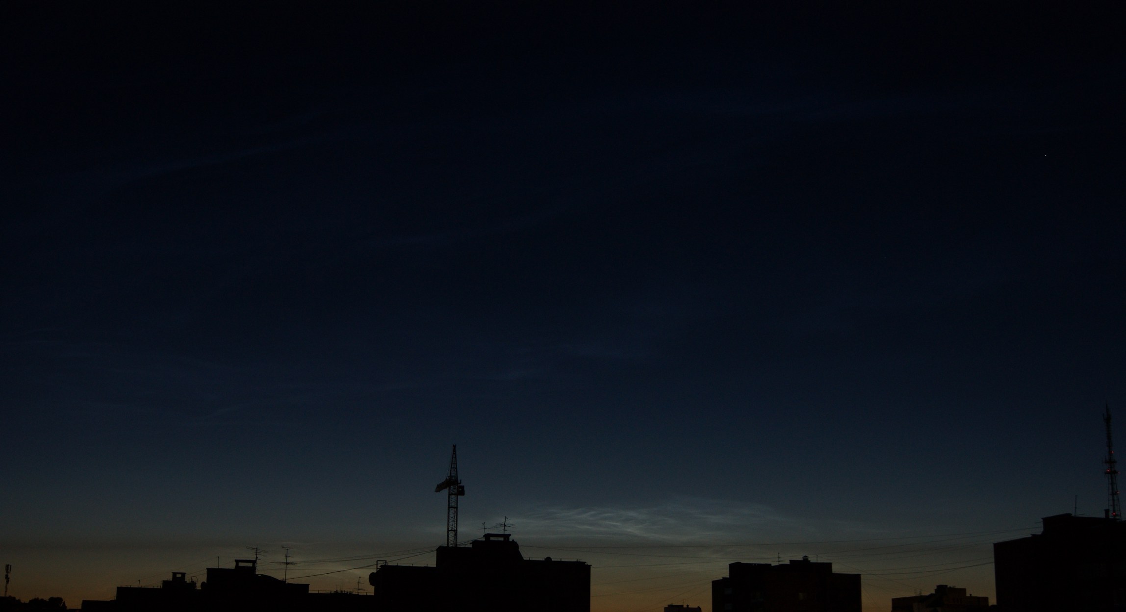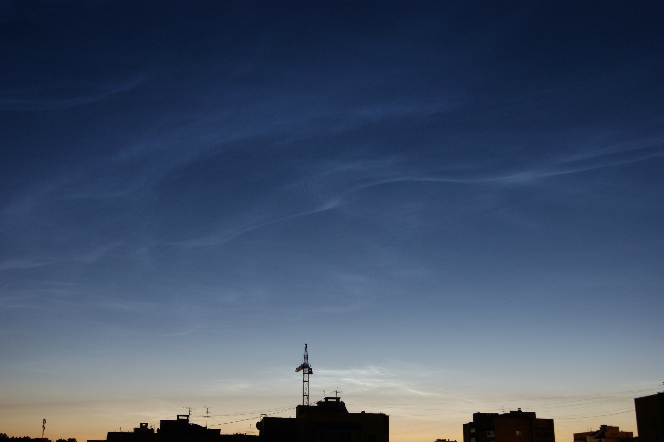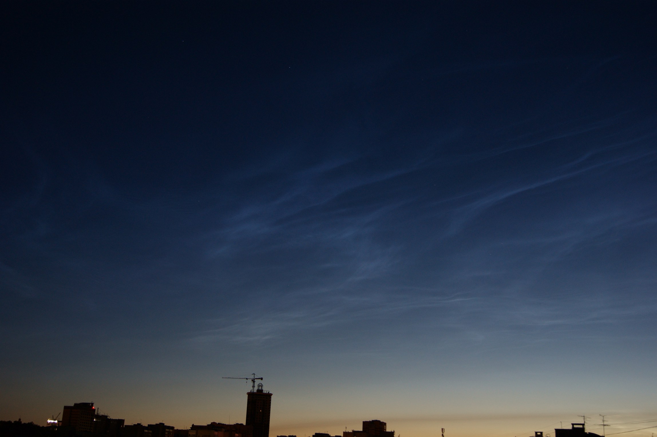 Ярославль, север, высота 40 гр, пятна серебристого флёра, яркость 1 балл