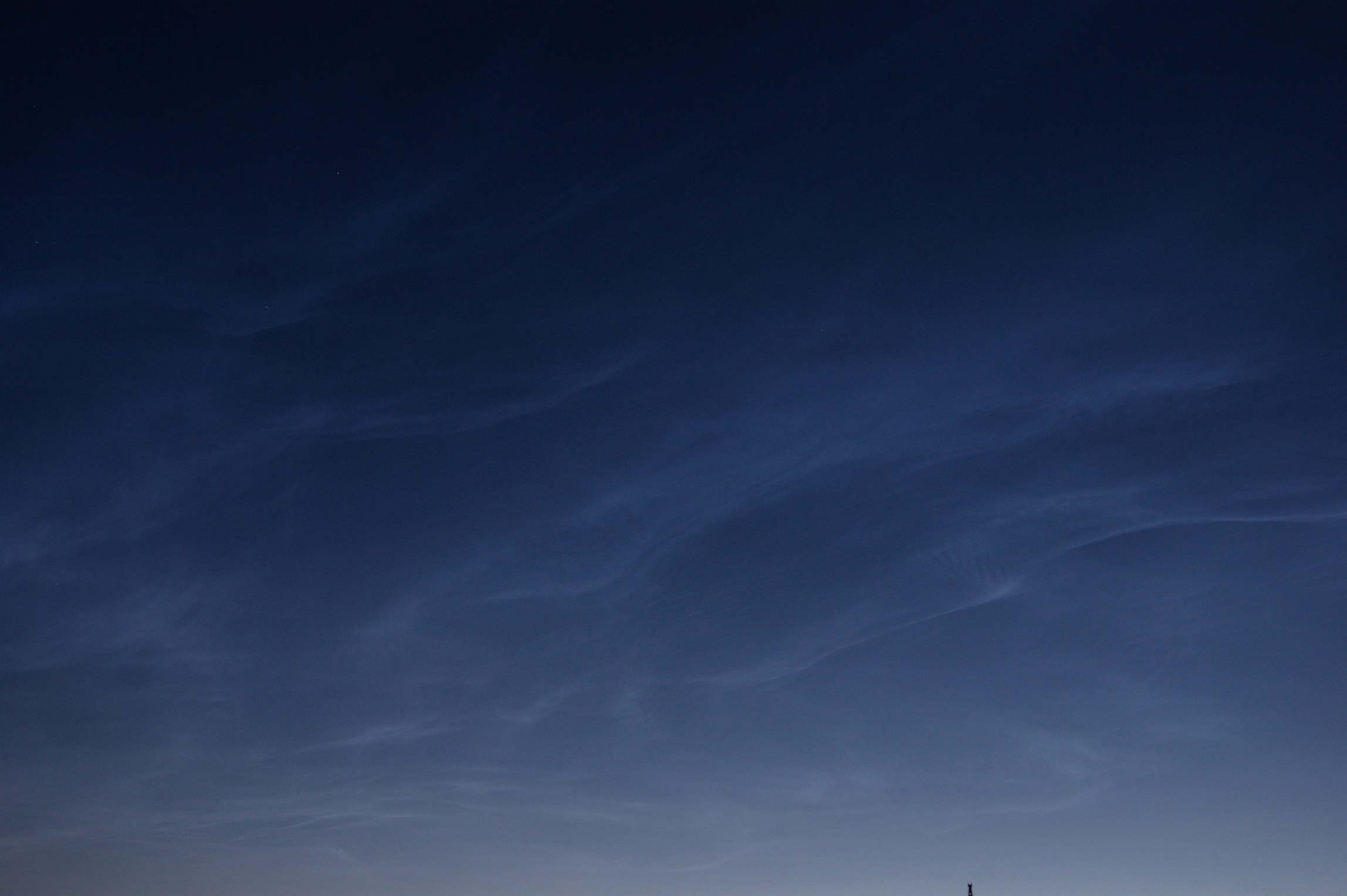 Цитата: olsky от 13 Июл 2013 [21:52:15]В правой части кадра, у горизонта, можно видеть слабые зачатки возможного разгорания, ближе к рассвету... Но эти надежды не оправдалисьна самом деле, на рассвете СО появились снова на севере. от горизонта и почти до зенита небо было закрыто плотными высококучевыми облаками с небольшим просветом, в котором СО засветились буквально на пять минут, после чего просвет затянулся:снимок от 03:18:
