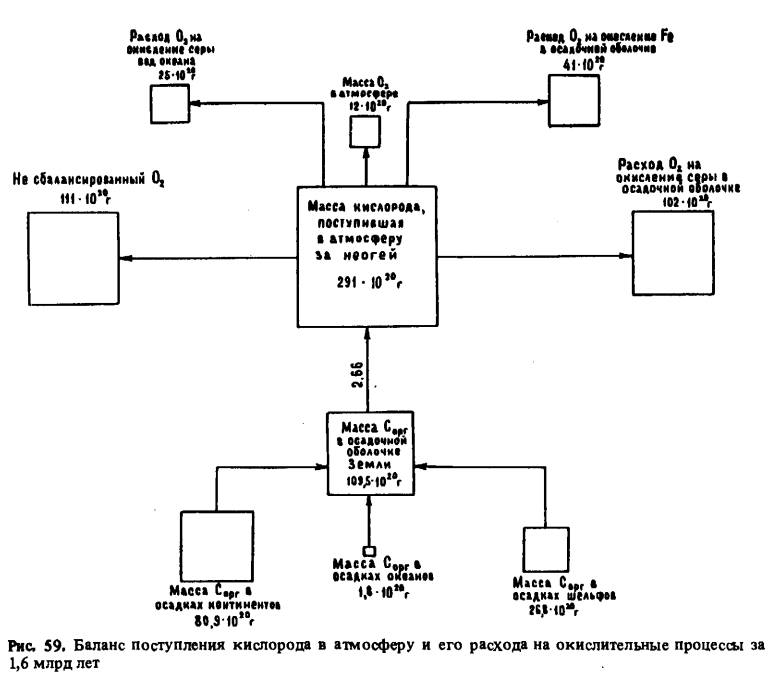 Масса органического (грубо говоря, не связанного с кислородом) углерода в осадочной оболочке Земли 109,5·1020 г. Считая, что этот углерод был добыт в процессе фотосинтеза из CO2, получаем 291·1020 г выделившегося кислорода, более чем достаточно и на окисление всего что можно, и на атмосферу. Как видите, учёные ещё и не знают, куда девались лишние 111·1020 г кислорода (11 квадриллионов тонн)  :)
