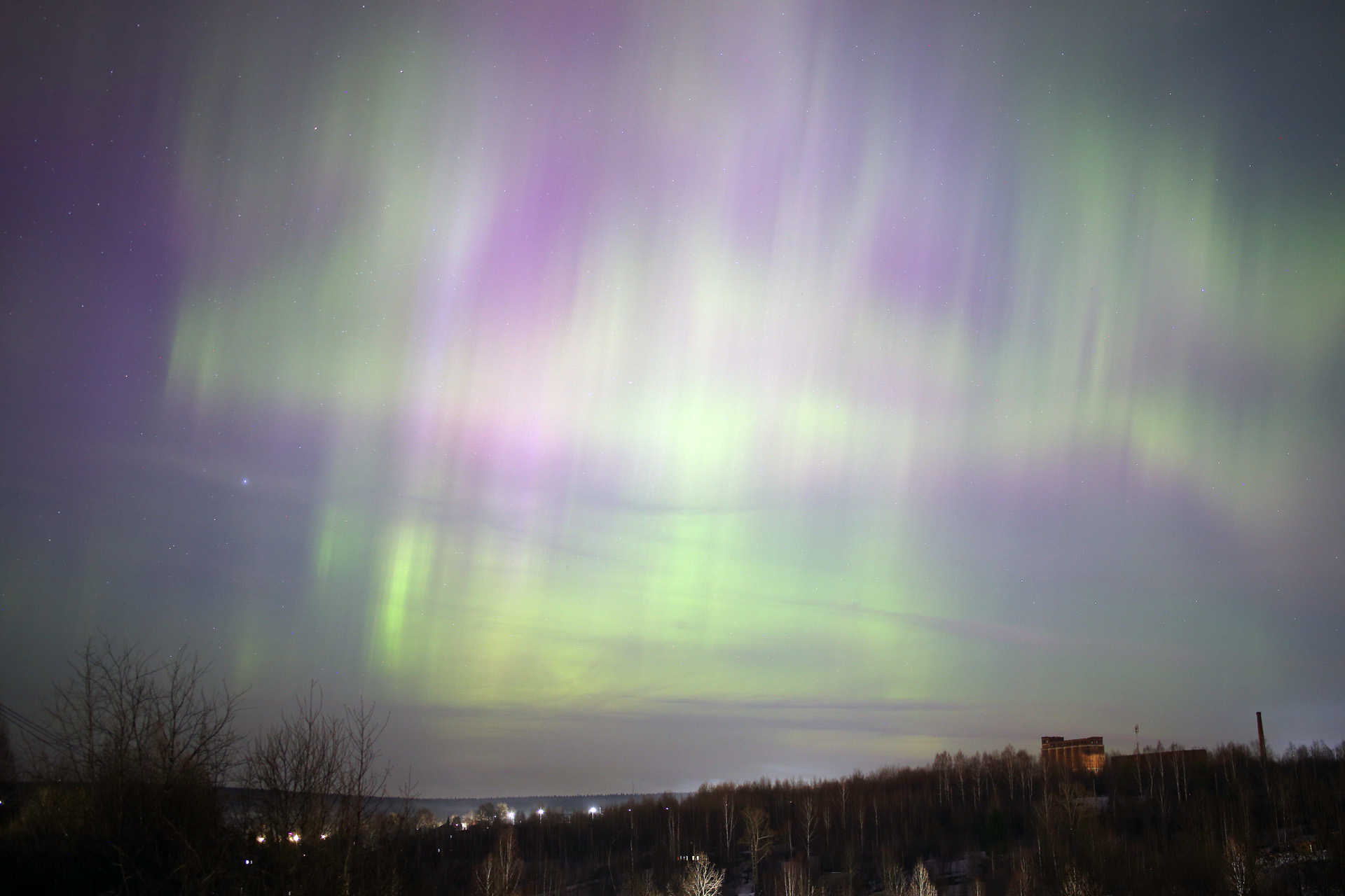 Полярное, прямо сейчас, яркое, цвет виден даже при полной луне, до зенита!!!