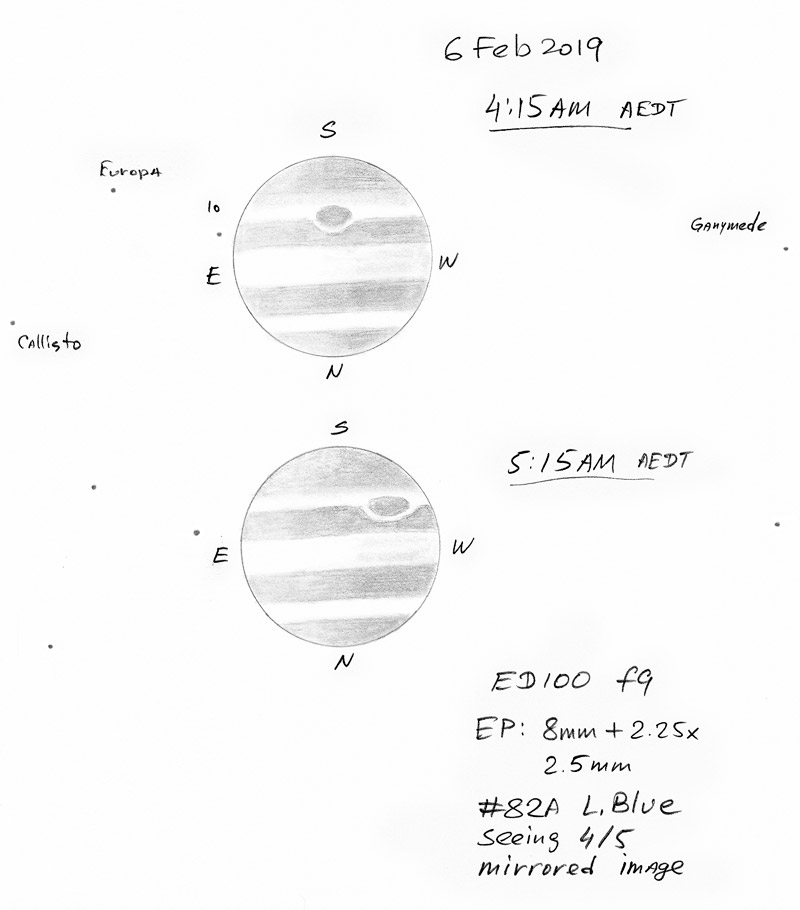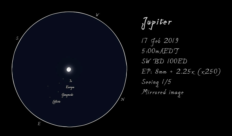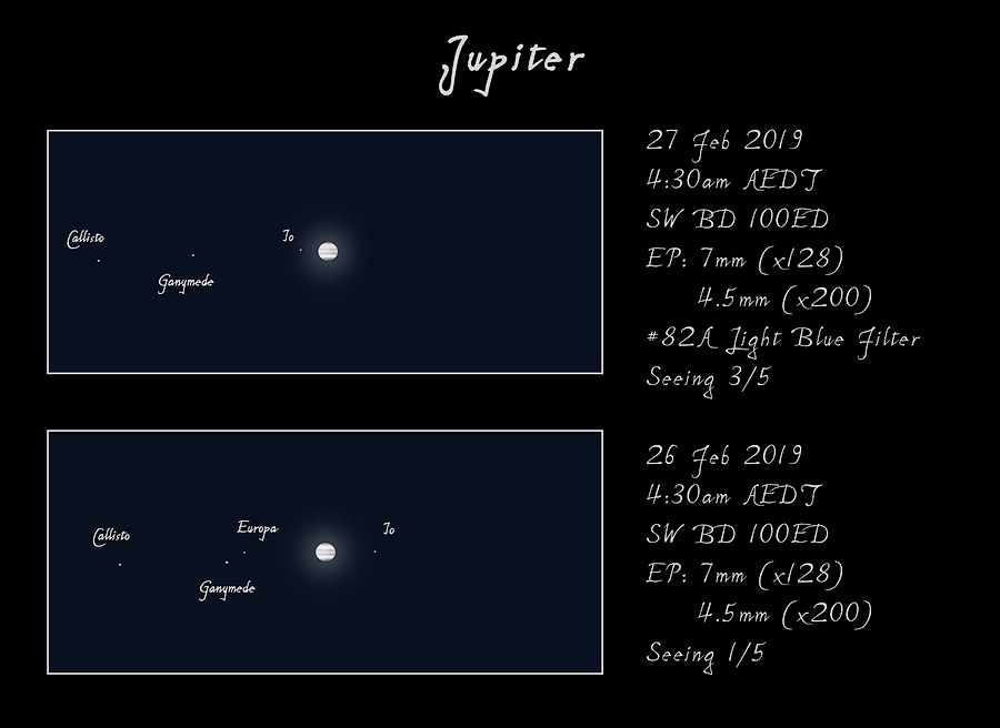 Сегодня впервые за два месяца дали погоду , успел провести наблюдения Юпитера.Атмосфера довольно стабильная, около -5°СХорошо видны: спш, юпш, сэп, юэп, на сэп вроде проглядываются два фестона(не уверенно),видно 3 спутника.Зарисовка карандашом обработанная в граф. редакторе.