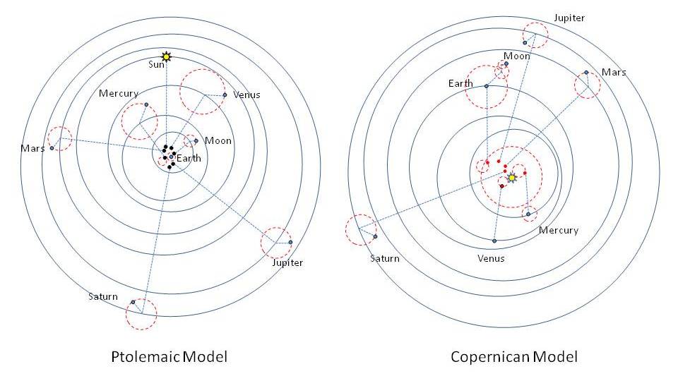 Совершенными формами были круг и сфера; было бы странно предполагать, будто на небесах что-то может быть несовершенным; таким образом, аксиомой являлось то, что планеты (включая Луну и Солнце) должны описывать круги вокруг неподвижной Земли, и поскольку задолго до этого Анаксимандр (ок. 611-546 гг. до н.э.) установил, что неподвижные звезды заключены в небесные сферы, очевидным казалось и то, что планеты должны быть заключены во вращающиеся сферы http://paranormal-blog.ru/geocentricheskaya-sistema-ptolemeya/