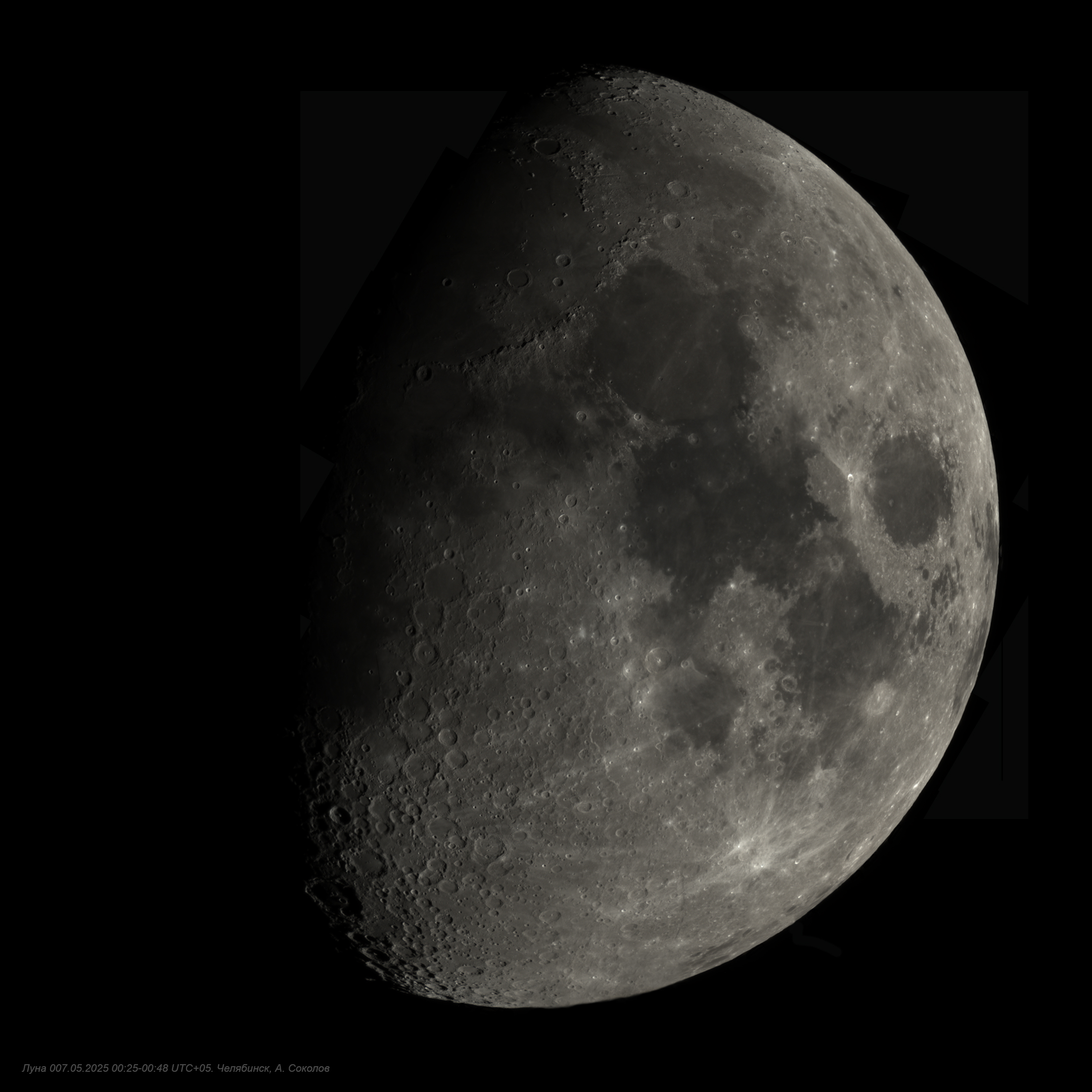 Луна, дневная съемка, 03.05.2025, СПб, балкон.SW200/1000+ZWO290mm+SvbonyIRpass, 9 пластин.