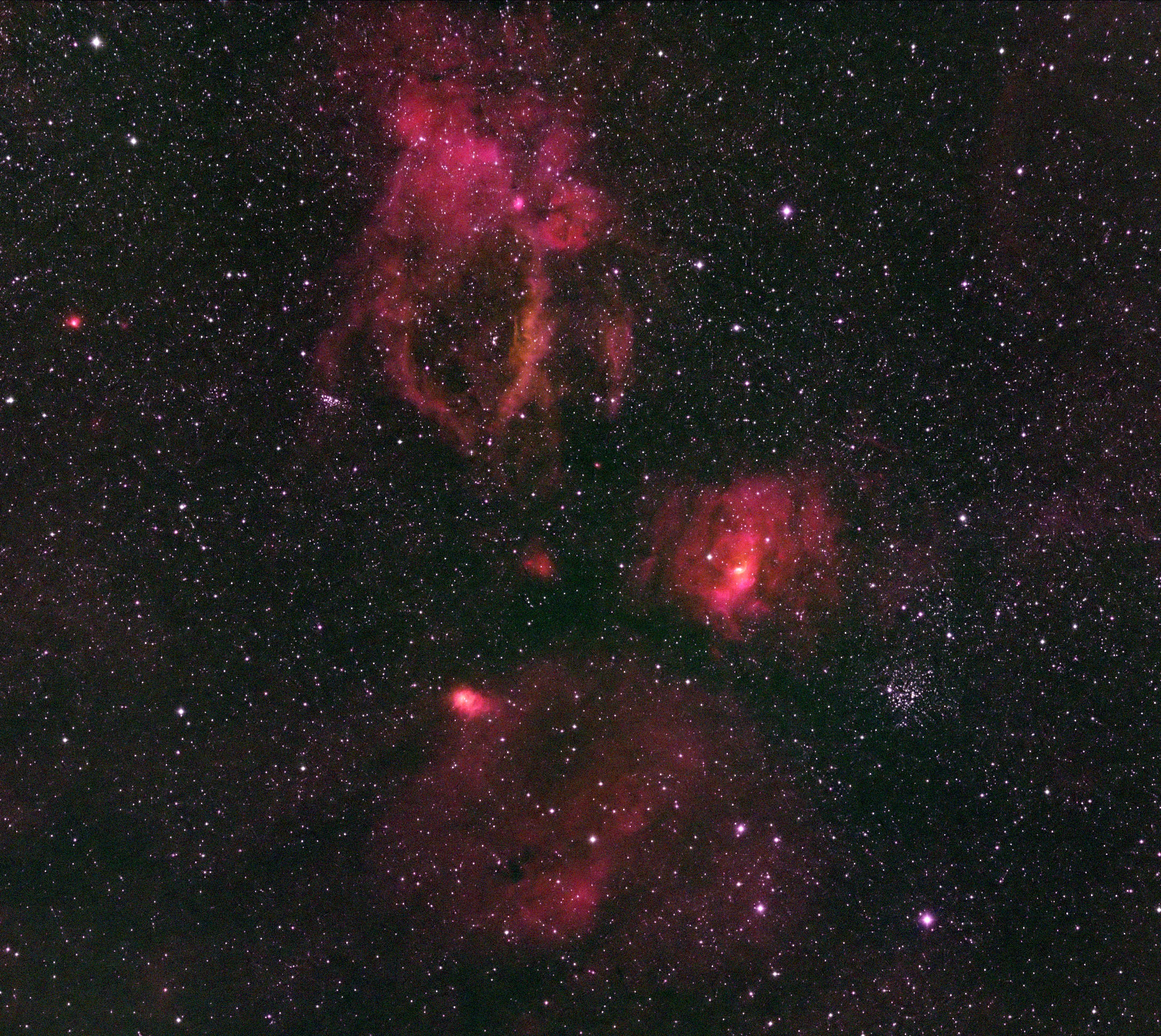 NGC 7635 (Пузырь)+NGC 7538 и окрестности.Astrotrac, Canon 200/2.8, Moravian G2. Ha+OIII+SII. По 30 мин в каждом канале. Гид: мидовский искатель+QHY5.
