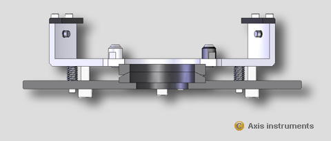 конструкция из инвара разборная (на схеме упрощённо), радиальные ограничители крепятся на винтах