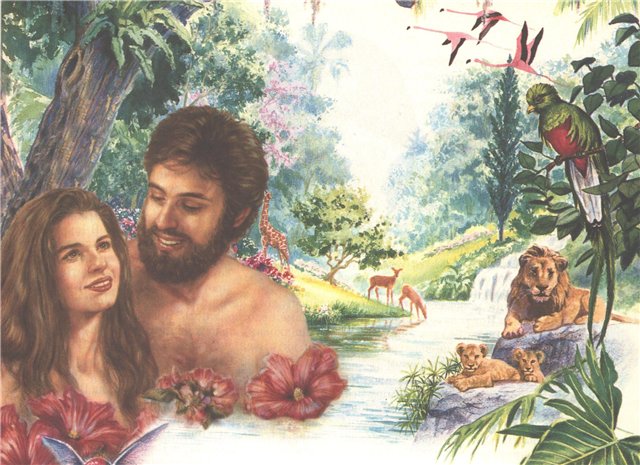 Согласно одной версии эта женщина Ева со своим мужем Адамом изначально жила в красивом месте на Земле, называемом раем: