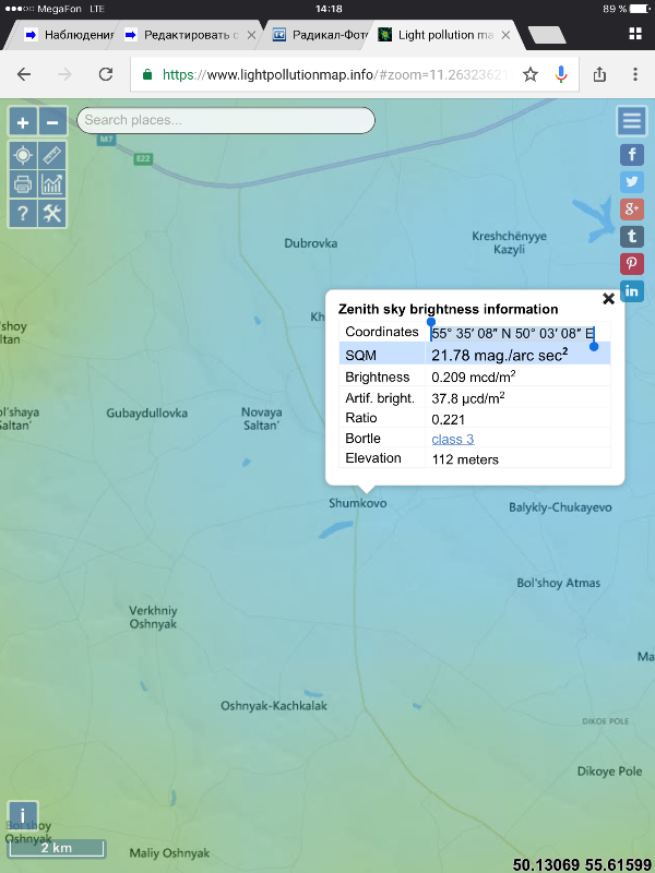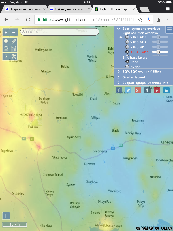 Всем привет из соседней Йошкар-Олы!Может кто ездит на наблюдения в нашу сторону? Есть местечки? Или все в засветке?