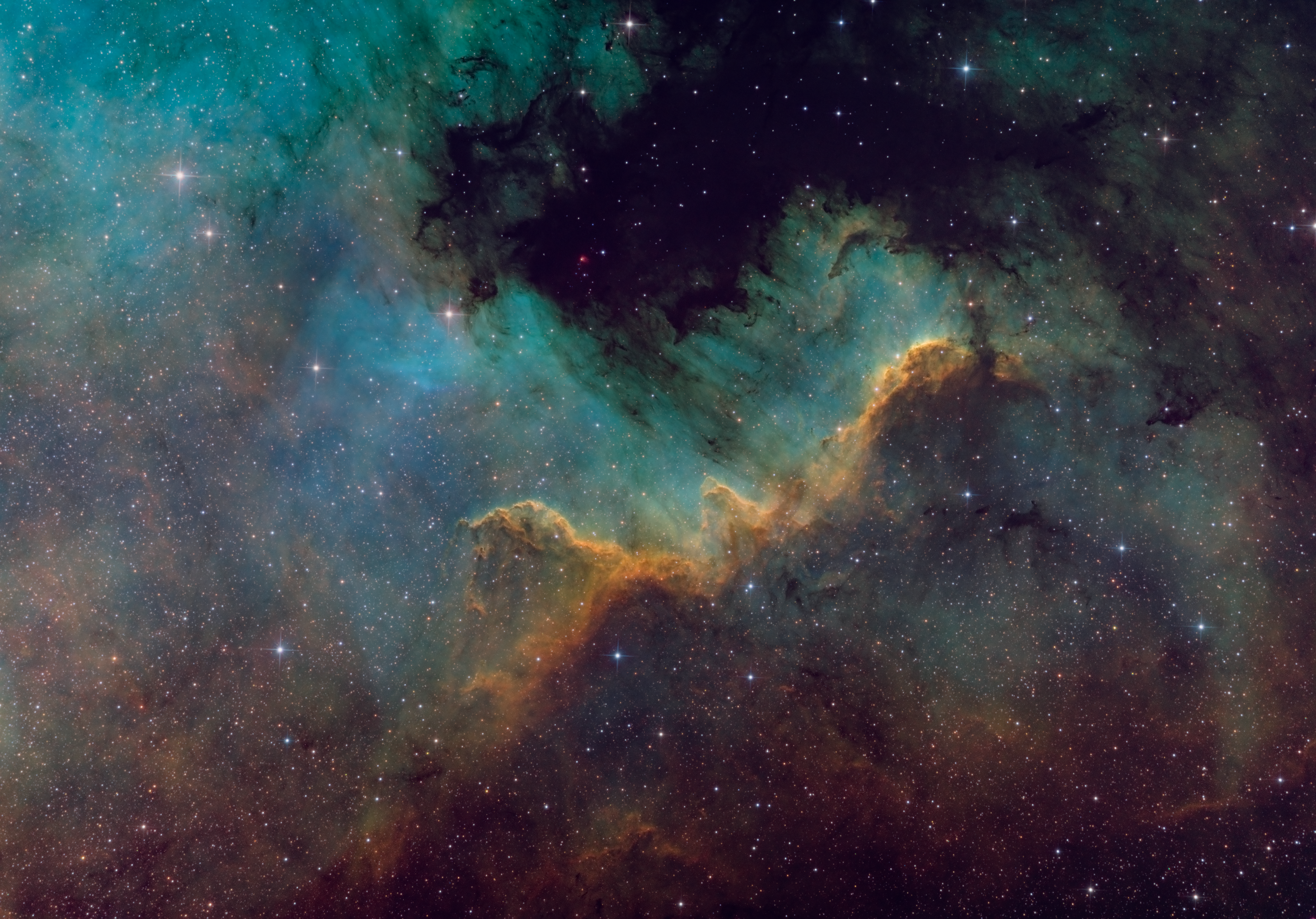 Туманность Северная Америка (NGC7000) - первый свет монохромной камеры и первый опыт съемки в SHO-палитре.