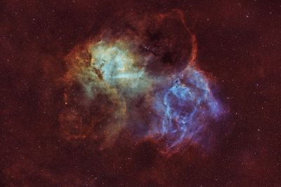 Переделал снимок, уделив больше внимания деконволюции и смешав сигналы Ha и Sii в Pixelmath. Вроде как более естественный цвет у пыли получился.