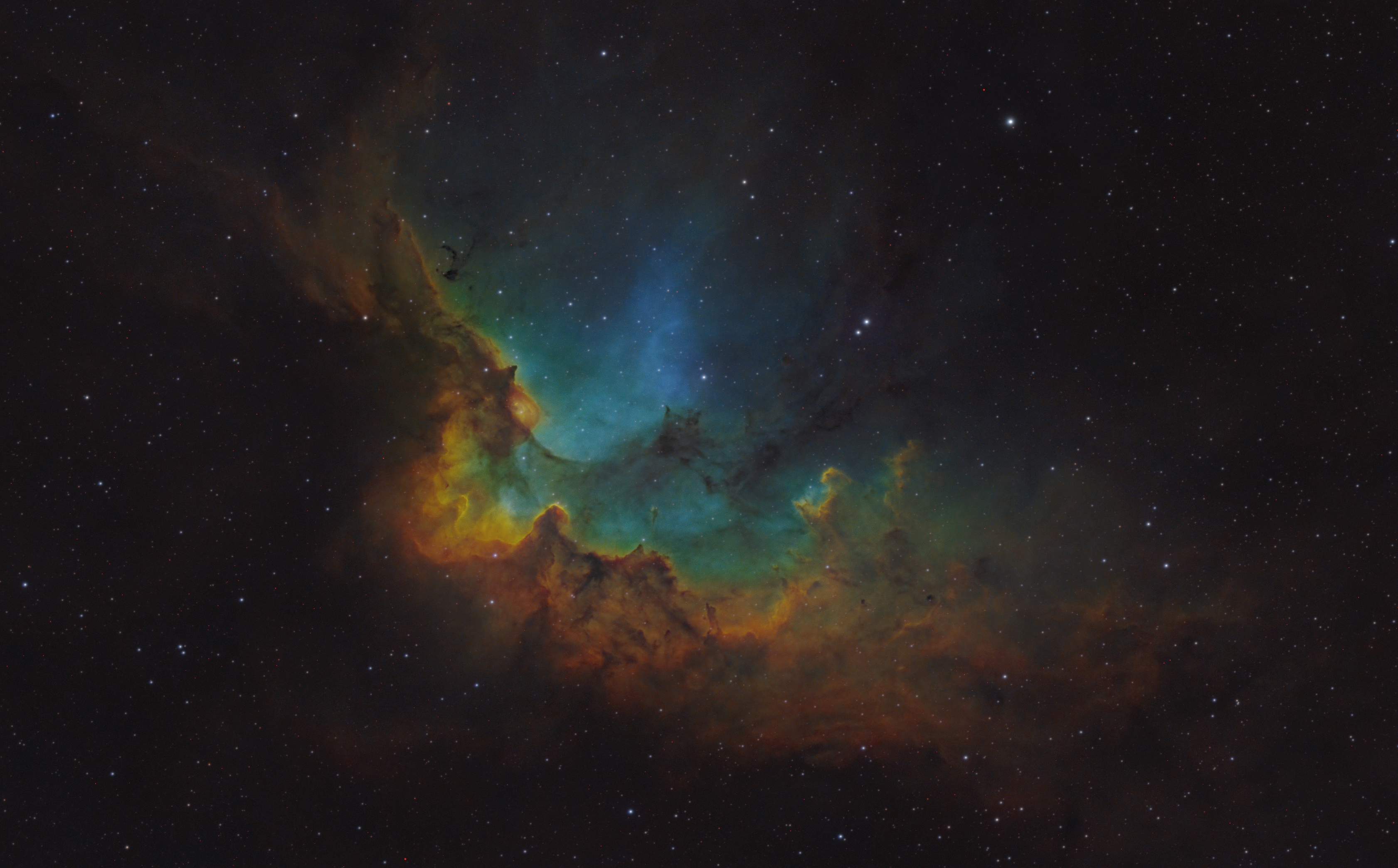 Продолжаем издеваться над бедной Вуалью ))Askar SQA55 / ZWO asi2600mm pro / baader H-alpha 7nm / askar OIII 4.5nm91x300" Ha104x300" OIIIобработка на малюсеньком экране на солнышке... )) возможны огрехи