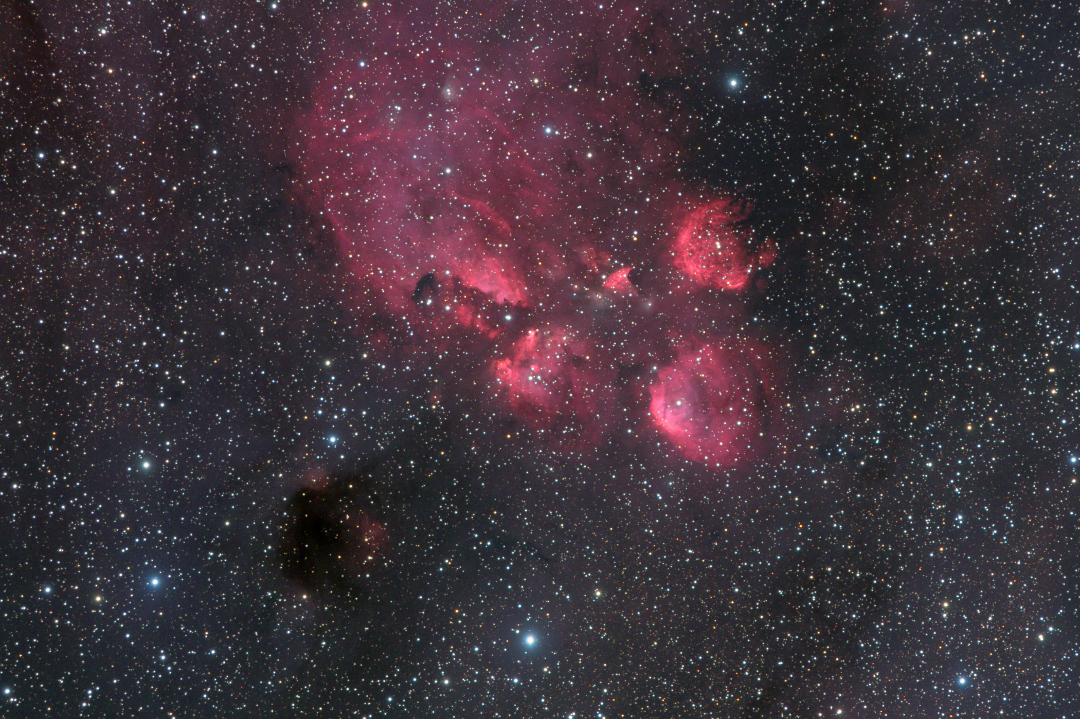 Череп . Снято с балкона.SW80ED + SW редуктор + Baader H-alpha + Canon1000Da.ISO 800, 14x600.Обработка IRIS, PS.Гидирование через искатель на DSI II.Очень сильная турбуленция, но это первая с ноября ночь с небом.