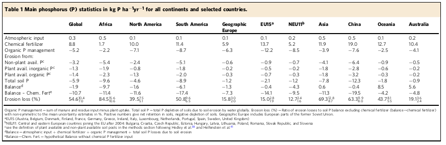 Отсюда следует, что сельское хозяйство в современном виде без внесения фосфорных удобрений абсолютно нежизнеспособно, причём их уже не хватает. Собственно большой новости тут нет, но в работе даны количественные оценки масштаба бедствия. Если исходить из них в отсутствие внесения фосфорных удобрений при существующем темпе потерь фосфора почвы придут к состоянию абсолютно непригодному для земледелия лет за 60.