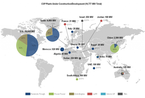 Currently, 571.16MW Concentrated Solar Power capacity has been commissioned in the United States, but with five large-scale projects scheduled for completion in 2013-14 this capacity is set to increase by 120%, a further 1318.5MW, making the United States a world leader in operational CSP plants.This increase in operational capacity is set to make 2013 a momentous year for the CSP industry in this region, with many experts pointing to the long-term impact that the commissioning of new plants will have on the future project pipeline, that currently stands at just over 1.5GW.