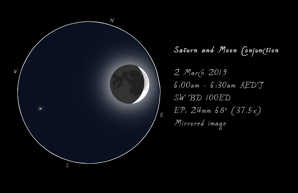 2 Марта. Соединение Сатурна и Луны. Ночью были облака, поэтому уже пришлось на более светлом небе наблюдать