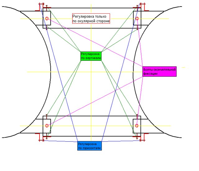 - Принцип такой, в вертикальной плоскости возможны перемещения и фиксация труб в пределах +/- 4мм <...>-Приведение фокусов на общую плоскость- продольным перемещением труб, вторичных зеркал и общего окулярного узла- исё тоже в пределах 3-4мм. <...> и всё будет проштифтованно.