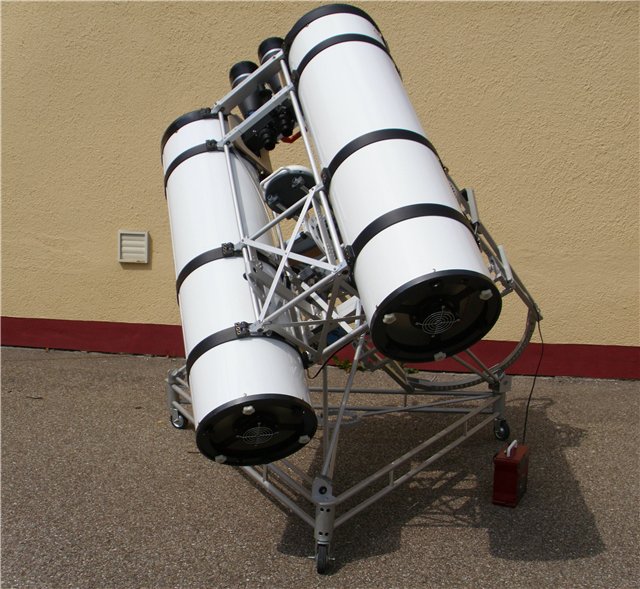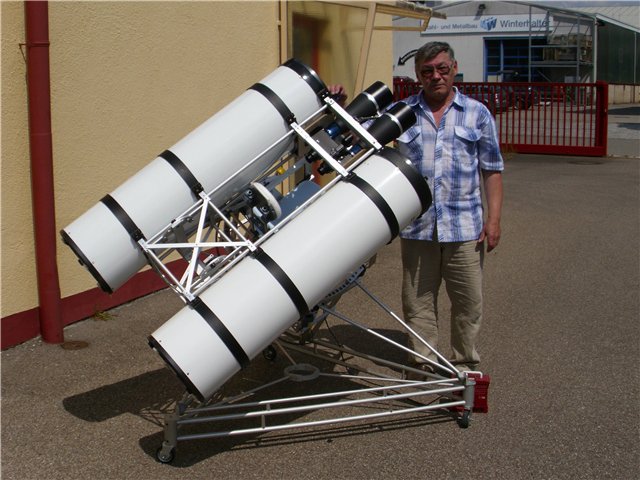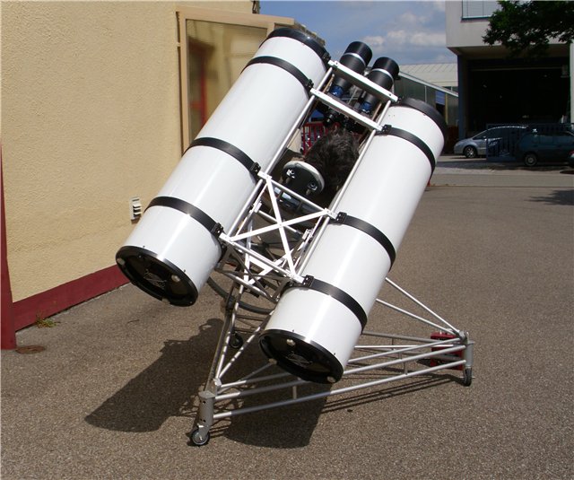 почему, все-таки Вы не стали делать одну большую трубу с бинокулярной приставкой ? Насколько я понимаю, по стоимости зеркала это было бы примерно то же, если не дешевле. Несколько сложнее был бы окулярный узел, но это тоже как посмотреть...А еще с одной трубой было бы проще залезать в кресло