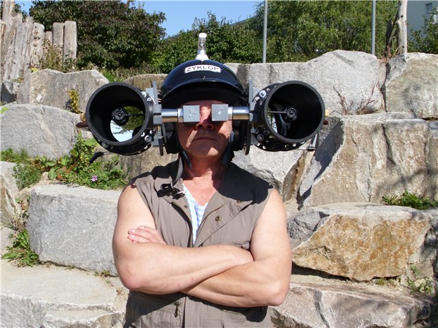 Цитата: kryptonik от 21 Сен 2010 [21:50:13]А почему не на мотоцикле? На скорости сопротивление воздуха не мешает наблюдениям?А если серьезно, нет ли проблем при нахождении конкретного объекта?Не знаю как с сопротивлением воздуха но полагаю позволит раньше распознавать дорожные знаки и засевших в кустах недоброжелателей Такие проблемы есть. Бывшая в наличии и использованная оптика не совсем подходит для поставленных целей. Поле зрения при 25хпримерно 2,5град. Думаю нужно не меньше 4град.В идеале оптика должна быть как минимум вдвое легче. Схема Максутов-Ньютон или Шмидт-Ньютон, увеличение 16-20х.