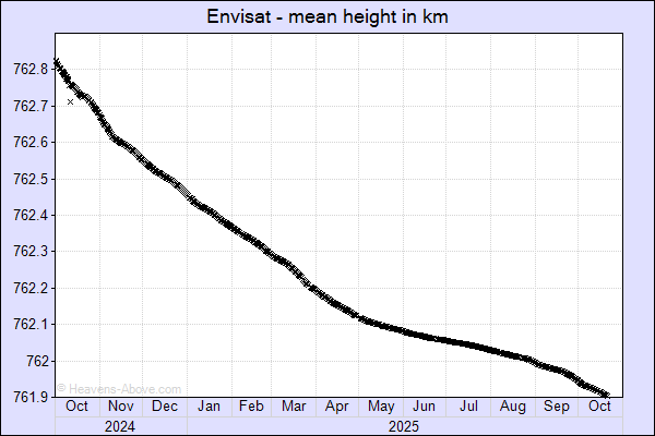 ! Интересная особенность - спутник менял яркость с периодом 6-8 s. от видимости до невидимости, равномерно. Т.к БД NORAD включает ряд ERS-2 deb, можно предположить что спутник повреждён мусором и вращается. К счастью, его вспышки всё же предсказуемы.