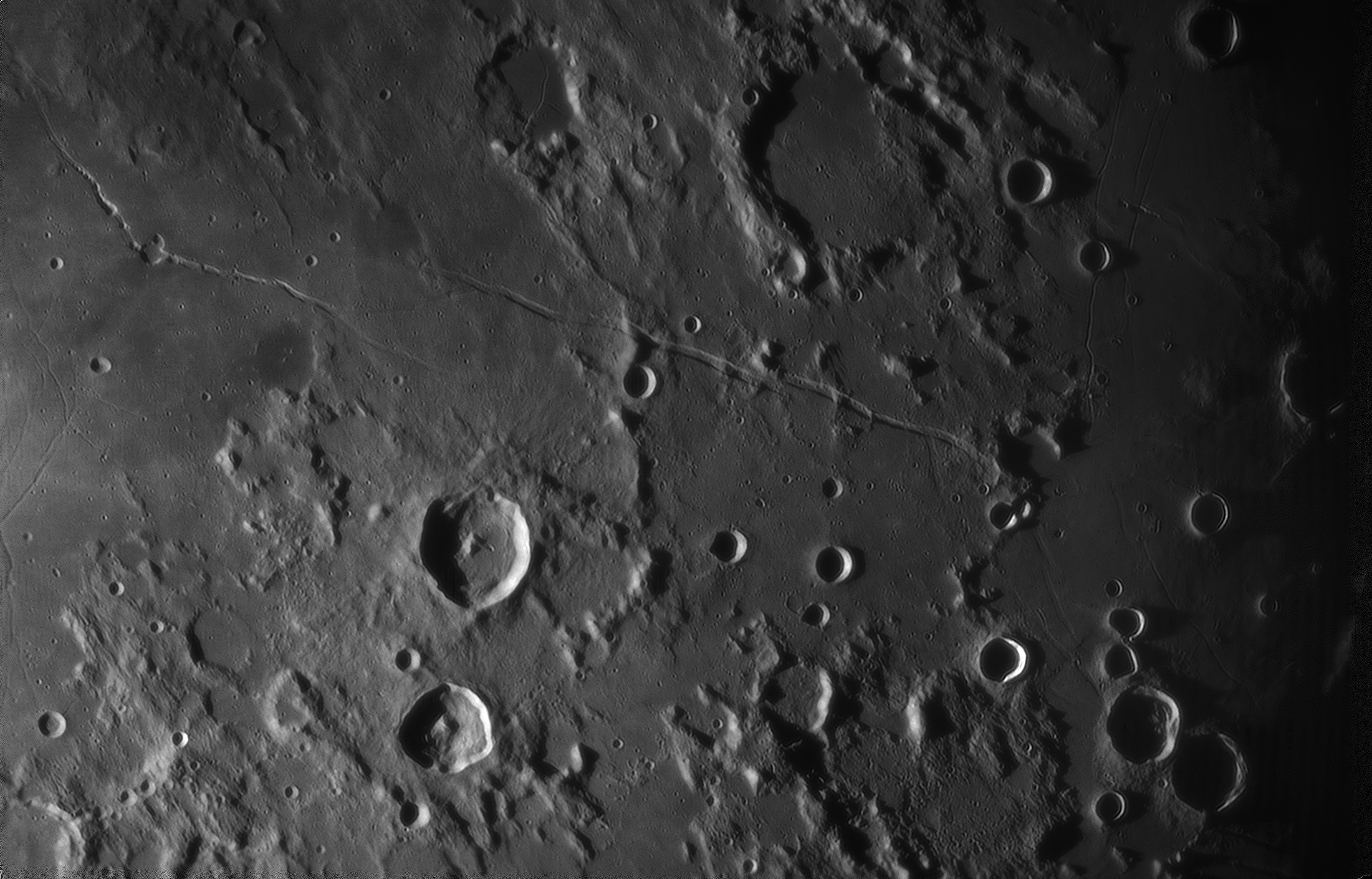 Клавий и др.Celestron 8"se + 2хЛБ на AZ-EQ6, QHY5III178m, красный фильтр,AutoStakkert 3.0 (в сумме 1200 к), Astra Image 3.0, PS