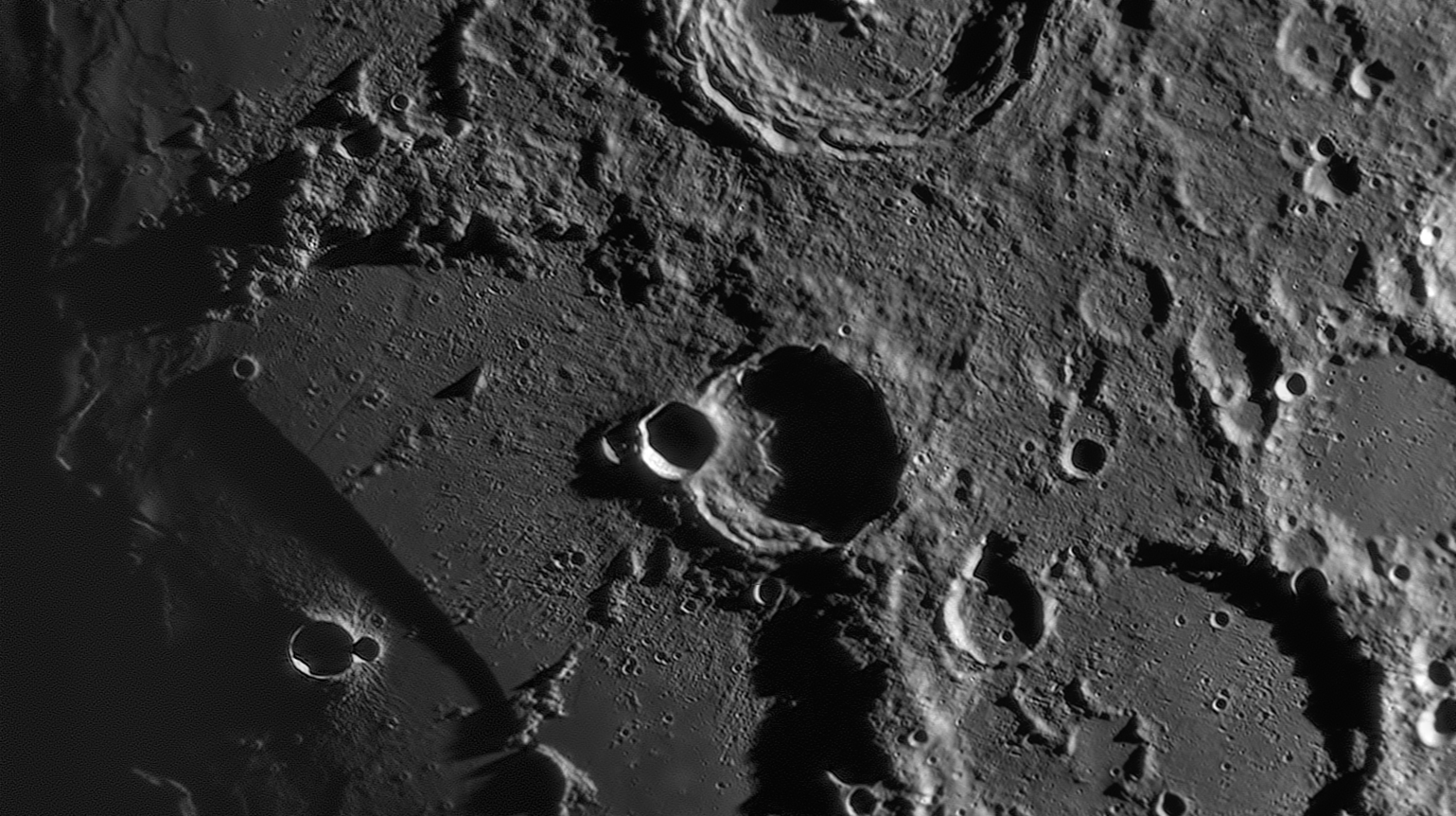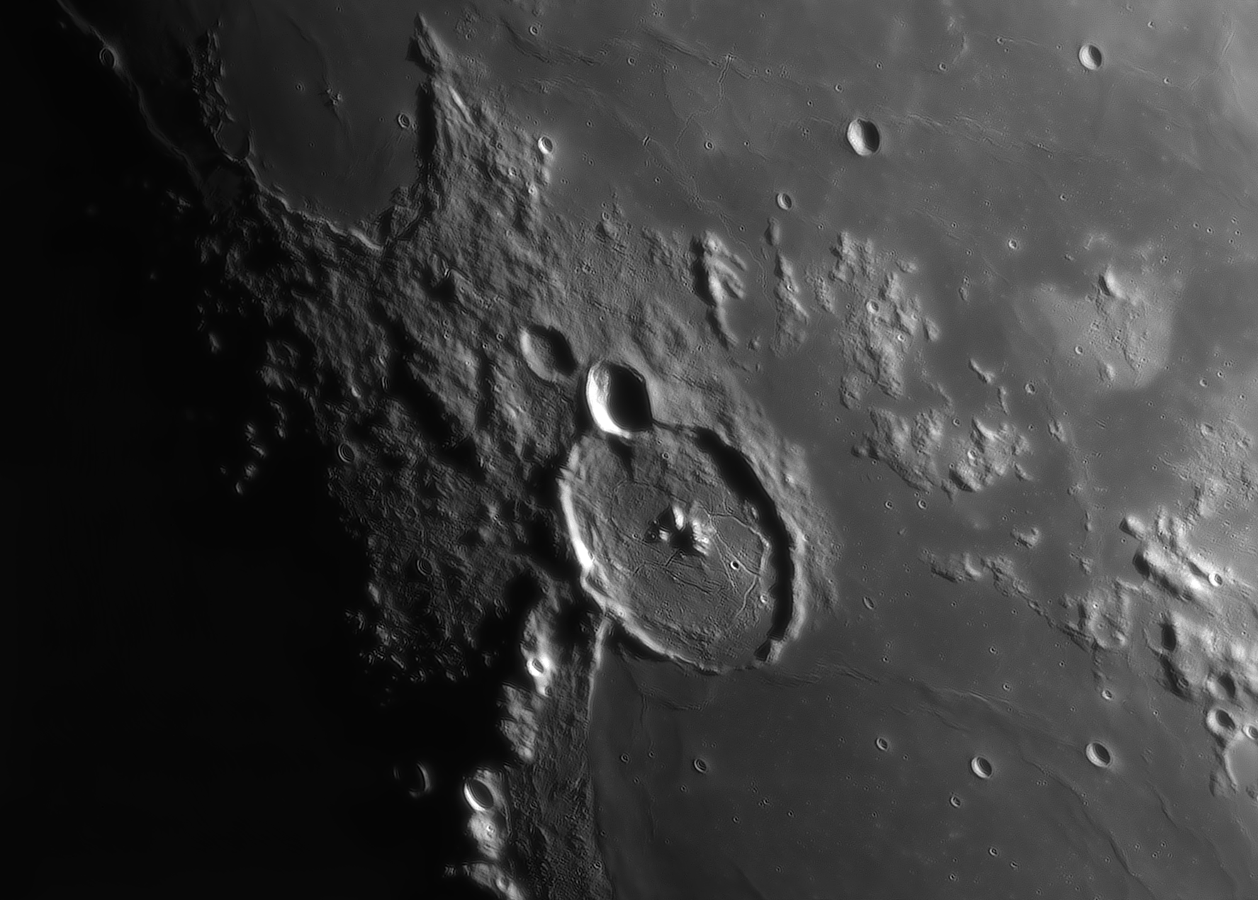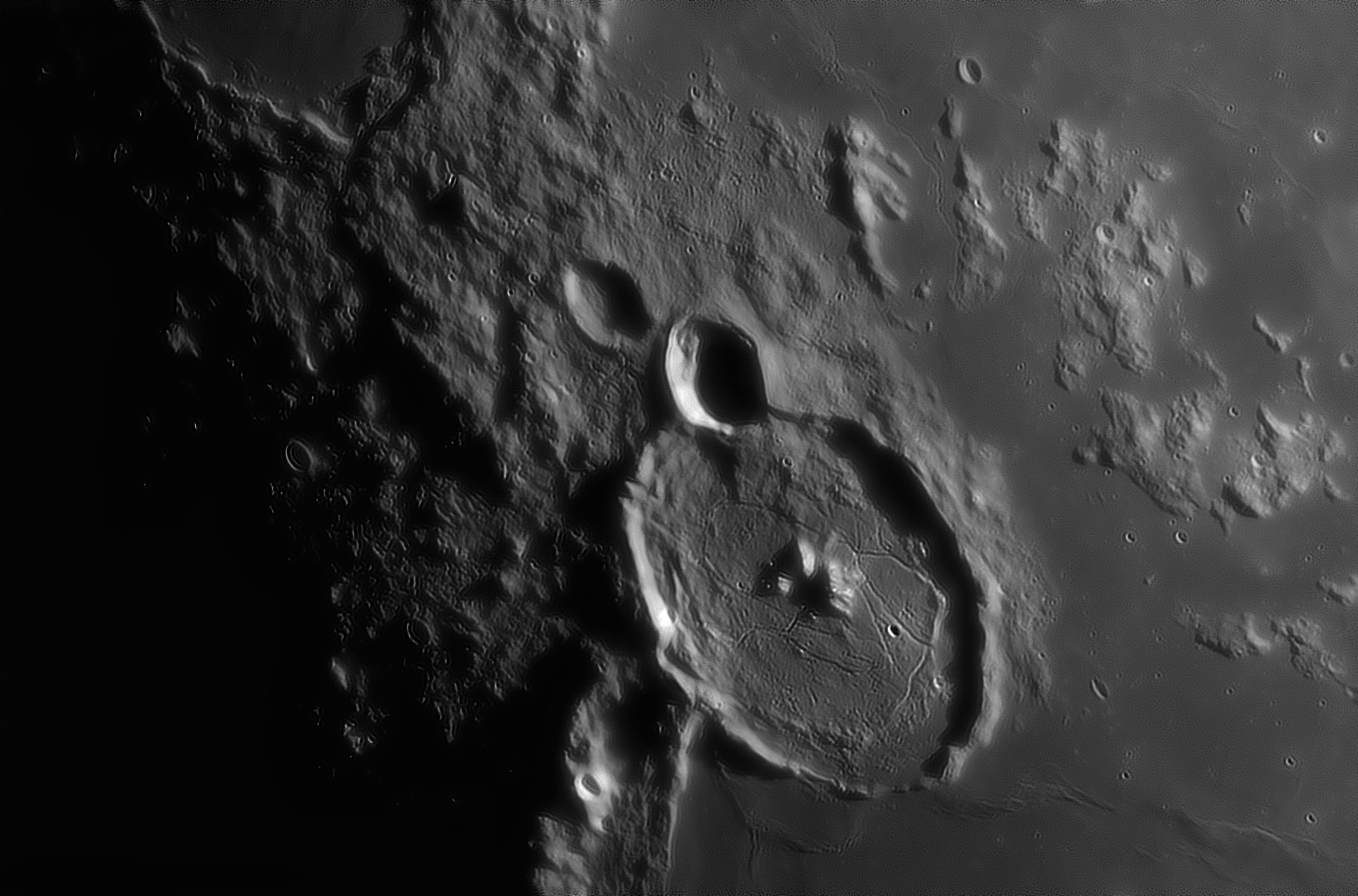 Если вам не надоел Гассенди, вот ещё один вариант от 26.04.2018Он снят на 1,5 часа позже чем Гассенди из сообщения #16243Причем сиинг тут был на единицу выше.Соответственно, тут я повозился чуть побольше, сначала отдельно простабилизировал и отфильтровал по качеству в PIPP. (3000 кадров выбрано из 5500)Из этих 3000 в стек пущено 540.Только DStation.вопрос как из 5500 выбрать 3000 кадров в Pipp85%:100% в отдельном окнеА что мы делаем когда у нас 2 варианта одного кратера?Правильно, лепим очередную гипножабу делаем из них анимацию!Тут интересно рассматривать проявления различий в сиинге.На поверхности морей проявляются мелкие кратеры, ручей сверху из гладкого распадается на фрагменты (на картах с LROC он чрезвычайно извилистый на мелком масштабе), итд итп.