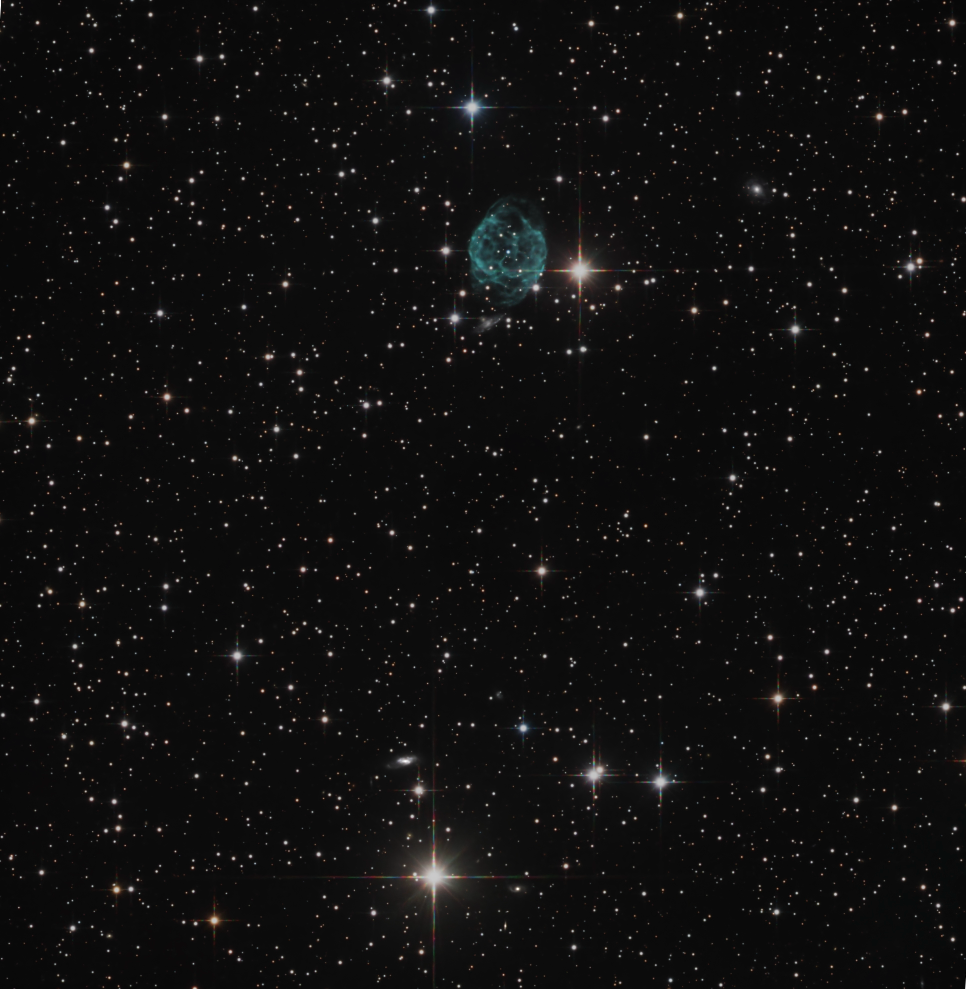 И снова здравствуйте, как говориЦЦа. Летний традиционно гость - мыльный пузырь, он же Ju1 или PN G075.5+01.7. Открыт любителем в 2008 году, тогда это была видимо сложная цель, а теперь "чёнить ярконькое водородное в полнолуние поснимать".