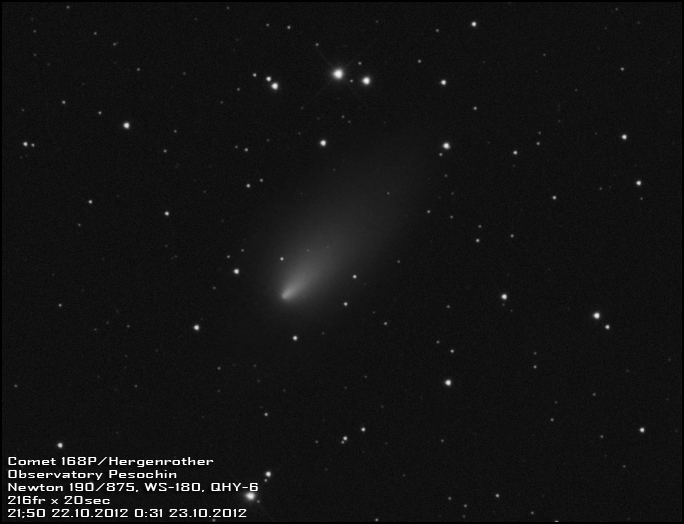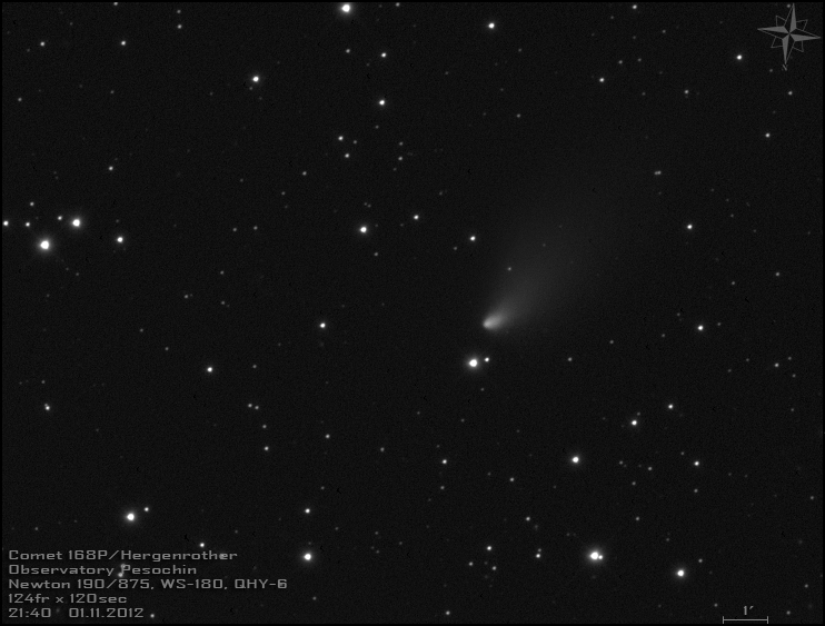 Немного запоздал, но просто не было времени обработать серию. Комета 168P/Hergenrother1.11.2012. 124 кадра по 120 секунд.http://astrobudka.blogspot.com/2012/11/168phergenrother.html - внимание!!! анимация 26 мегабайт!!!