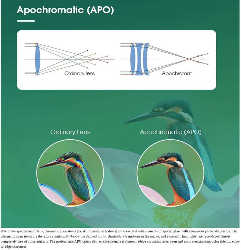 Не знаю китайское ли это изобретение или еще кого,но сейчас развелось определений ED и APO как грибов после дождя.ED, полу APO, APO, супер APO...У того же SKY ROVERA ЕСТЬ есть бинокуляры полу APO в котором как они заявляют нет стекла ED но картинку исправляют с помощью триплекса из линз,ED когда стоит одна линза ED, классическое APO(вообще не понял чем от ED отличается) и супер APO в котором в триплексе стоят 2 линзы ED.Что все это дает не знаю.