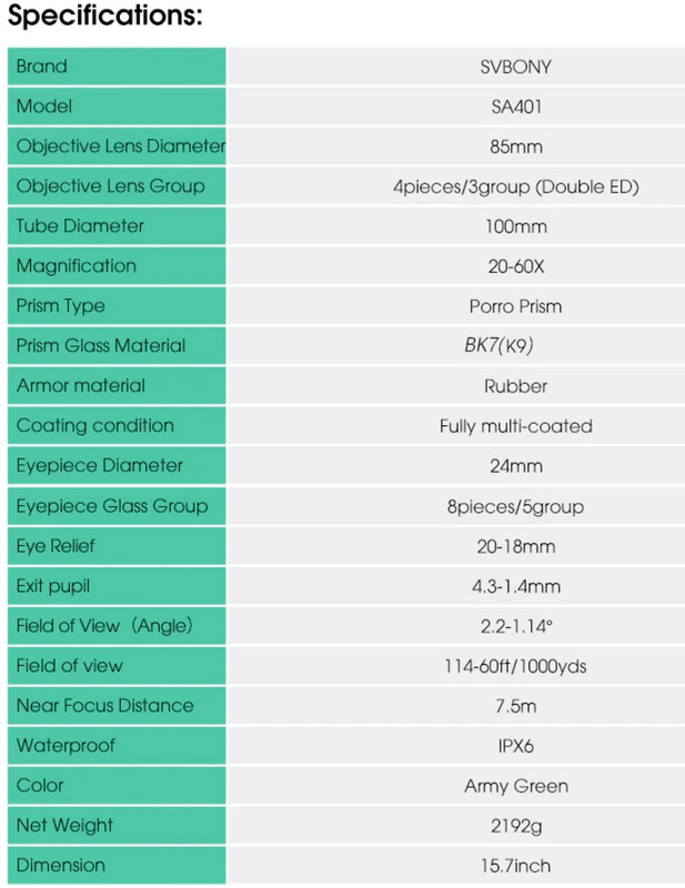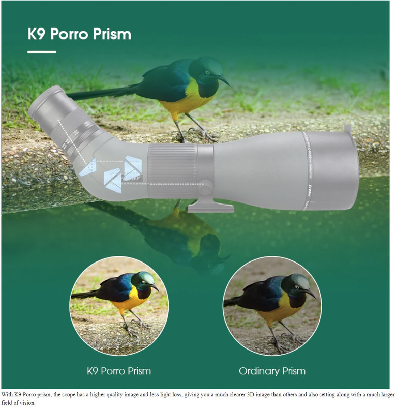 Странно, что в топовой трубе svbony используют К9(BK7) для призмы.При этом только у неё идёт упоминание о K9.Остальные трубы четко указывают BK7 или BK4. У SVBONY SV406P ED, которая в два раза дешевле SA401, призма BK4.У обоих Porro призма.
